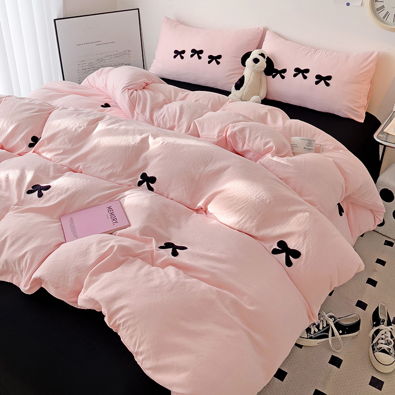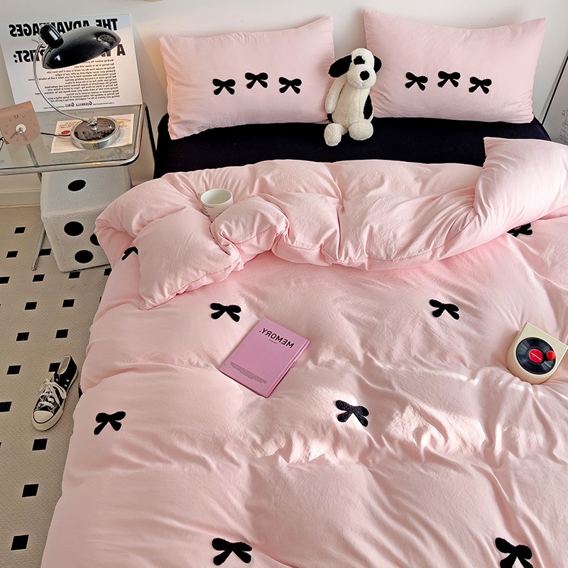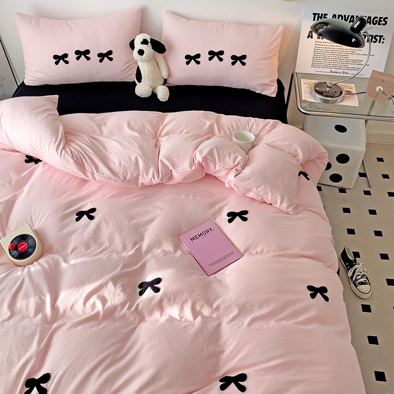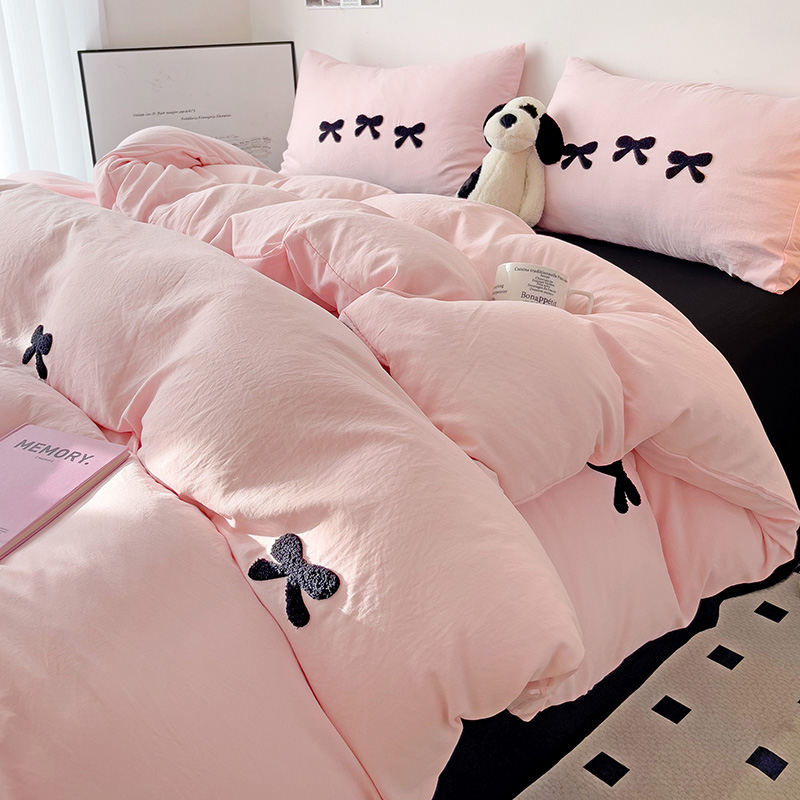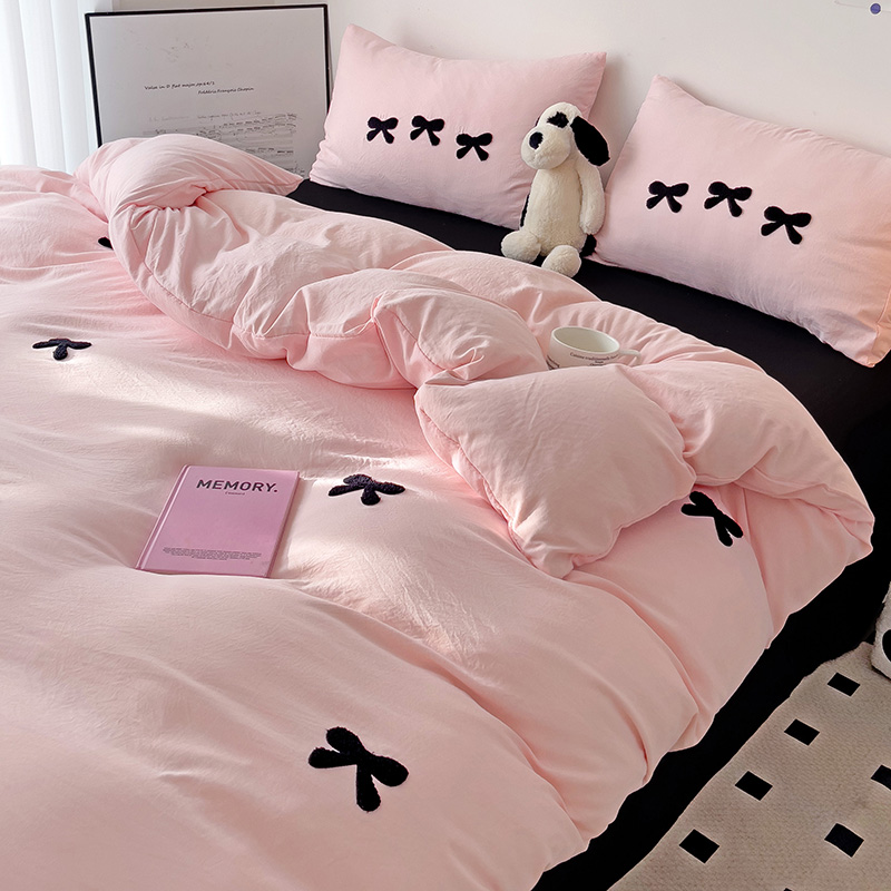 当前位置: 91家纺网 > 商品网购 > 床品套件 > 四件套 > 水洗棉四件套 > 艾特你 2024新款水洗棉毛巾绣四件套 蝴蝶结-粉黑
