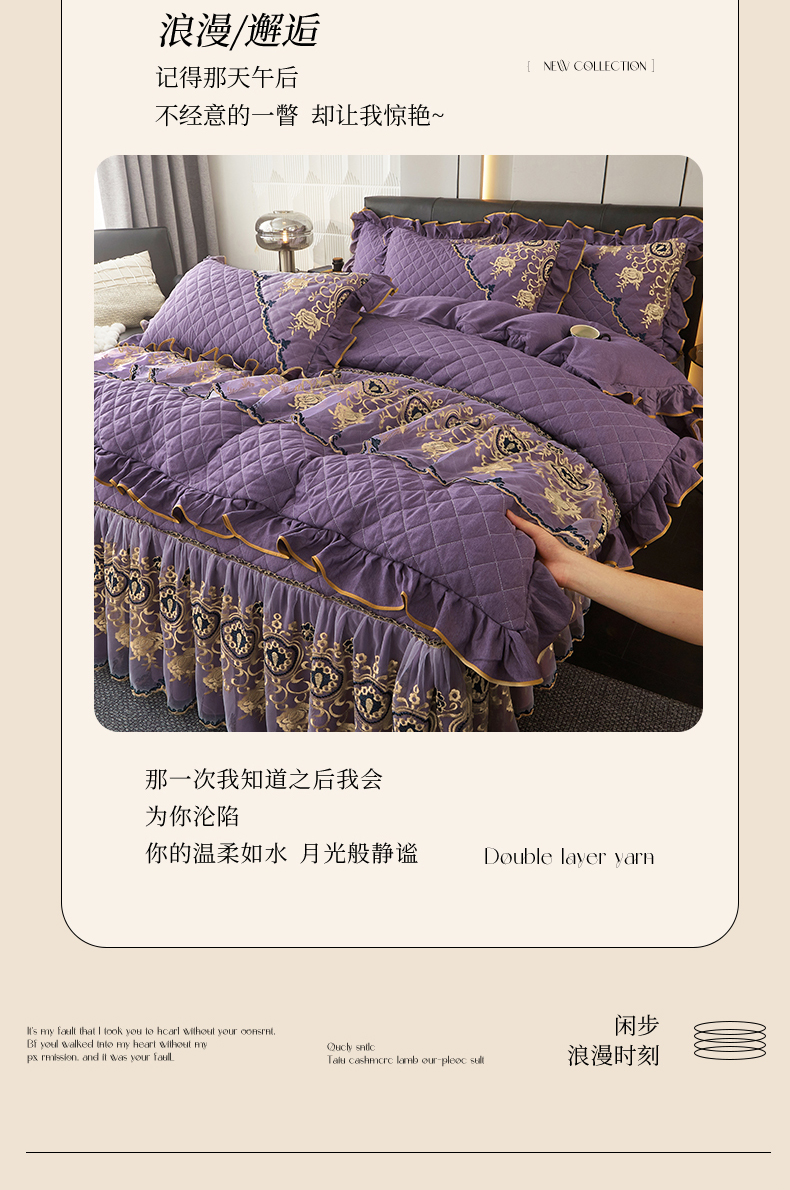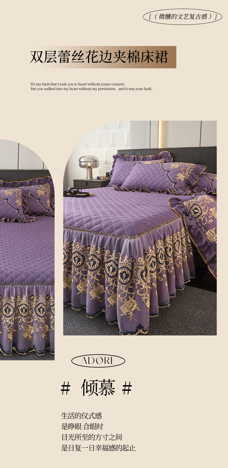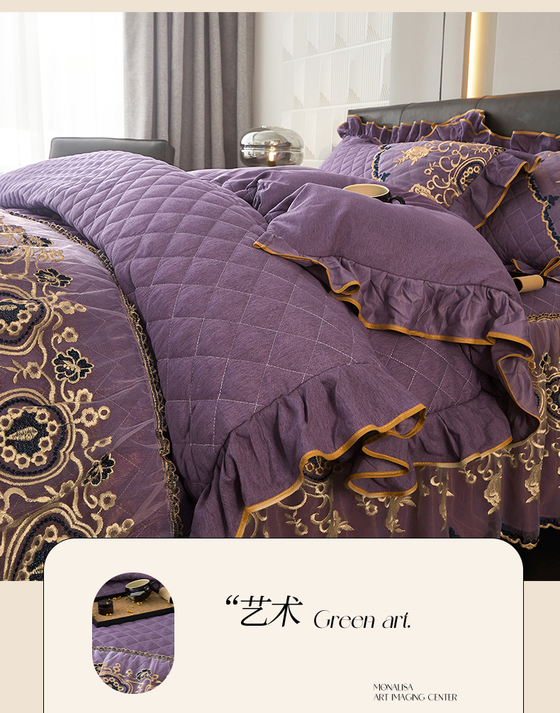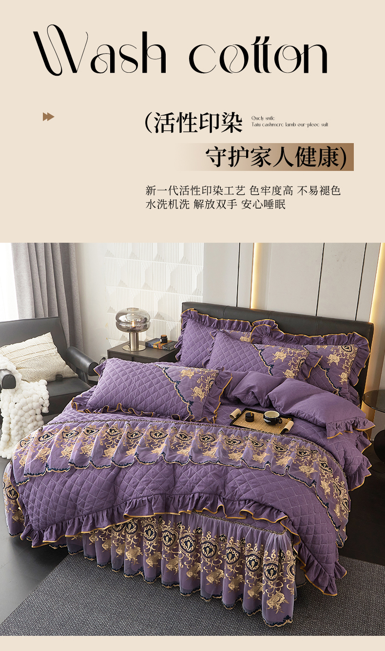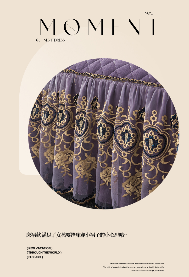 当前位置: 91家纺网 > 商品网购 > 床品套件 > 四件套 > 其它四件套 > 罗艺轩 2024新款色织蕾丝夹棉床裙款四件套-皇家贵族 皇家贵族-魅力紫