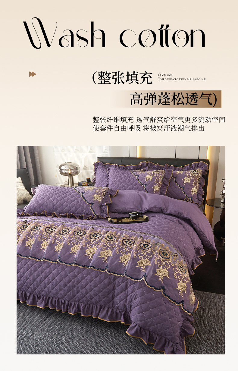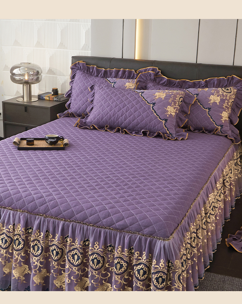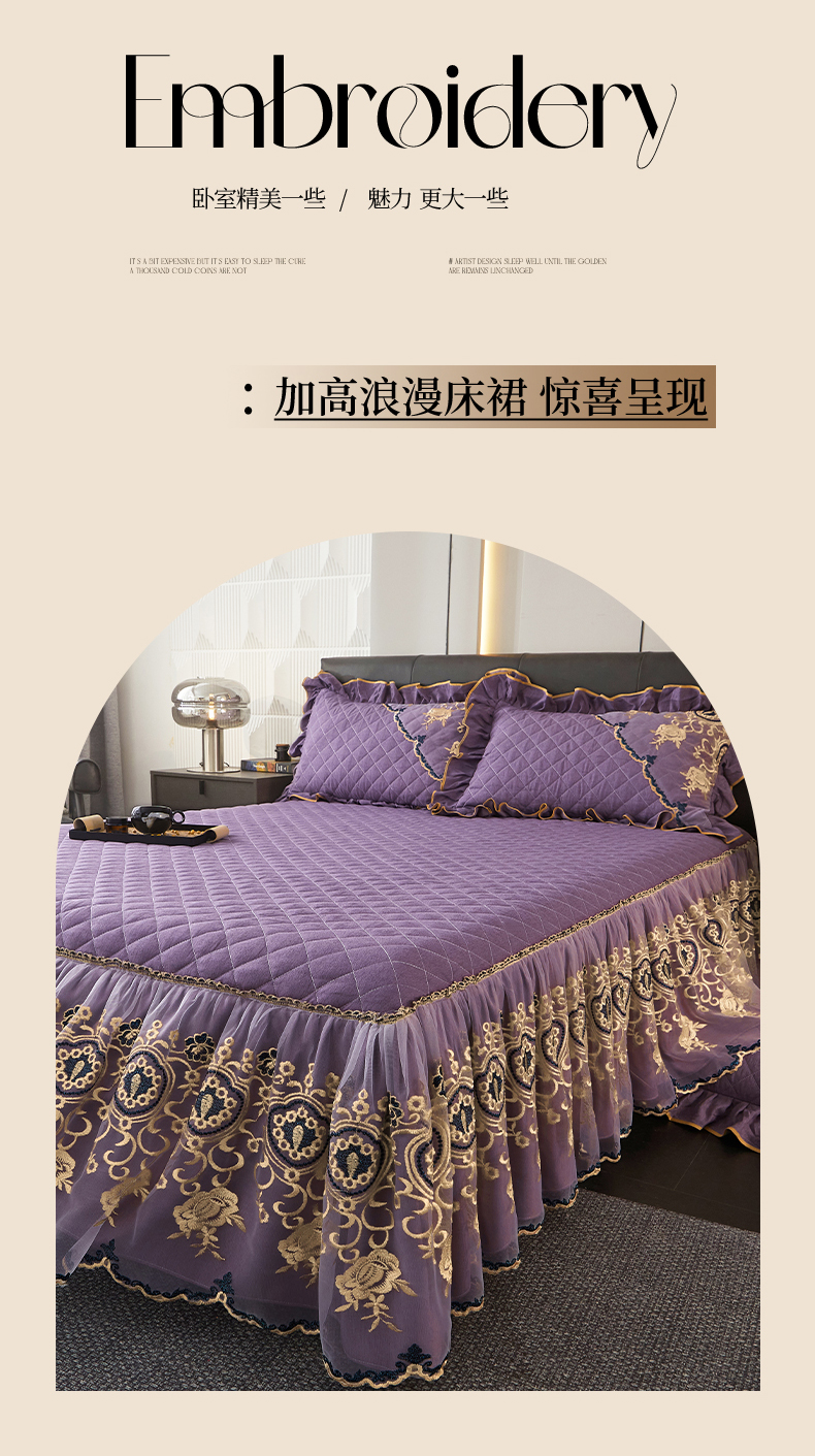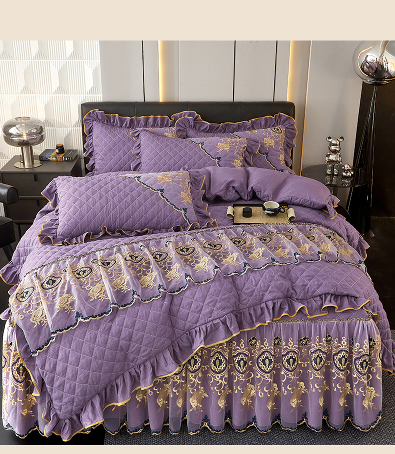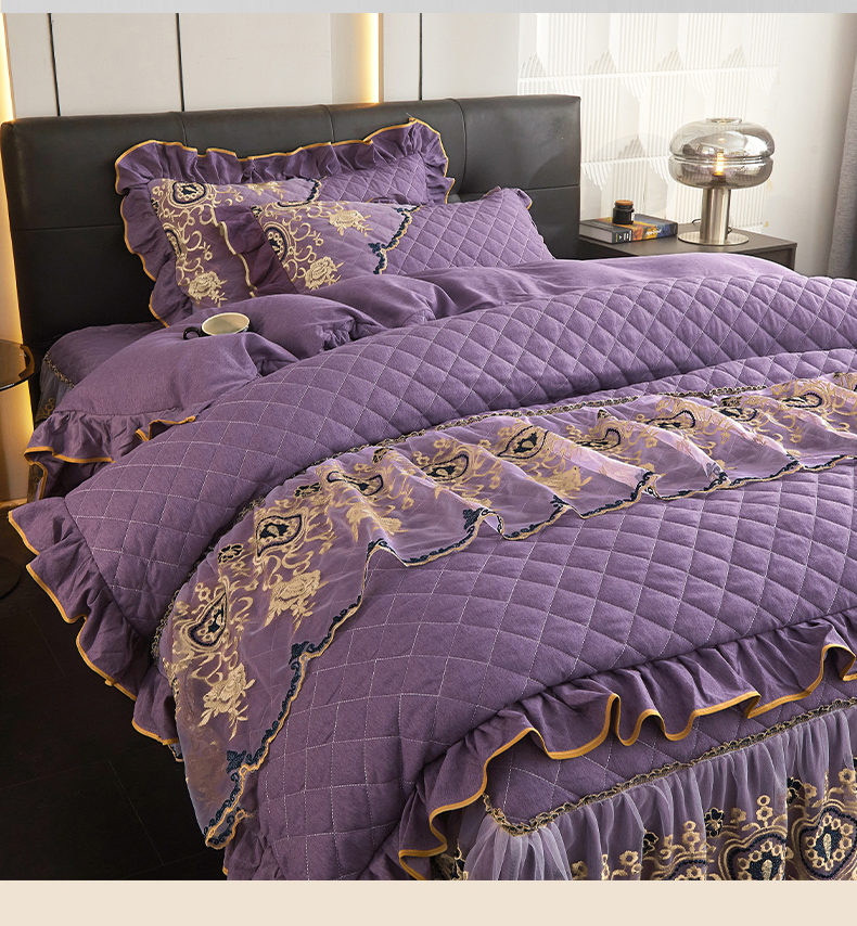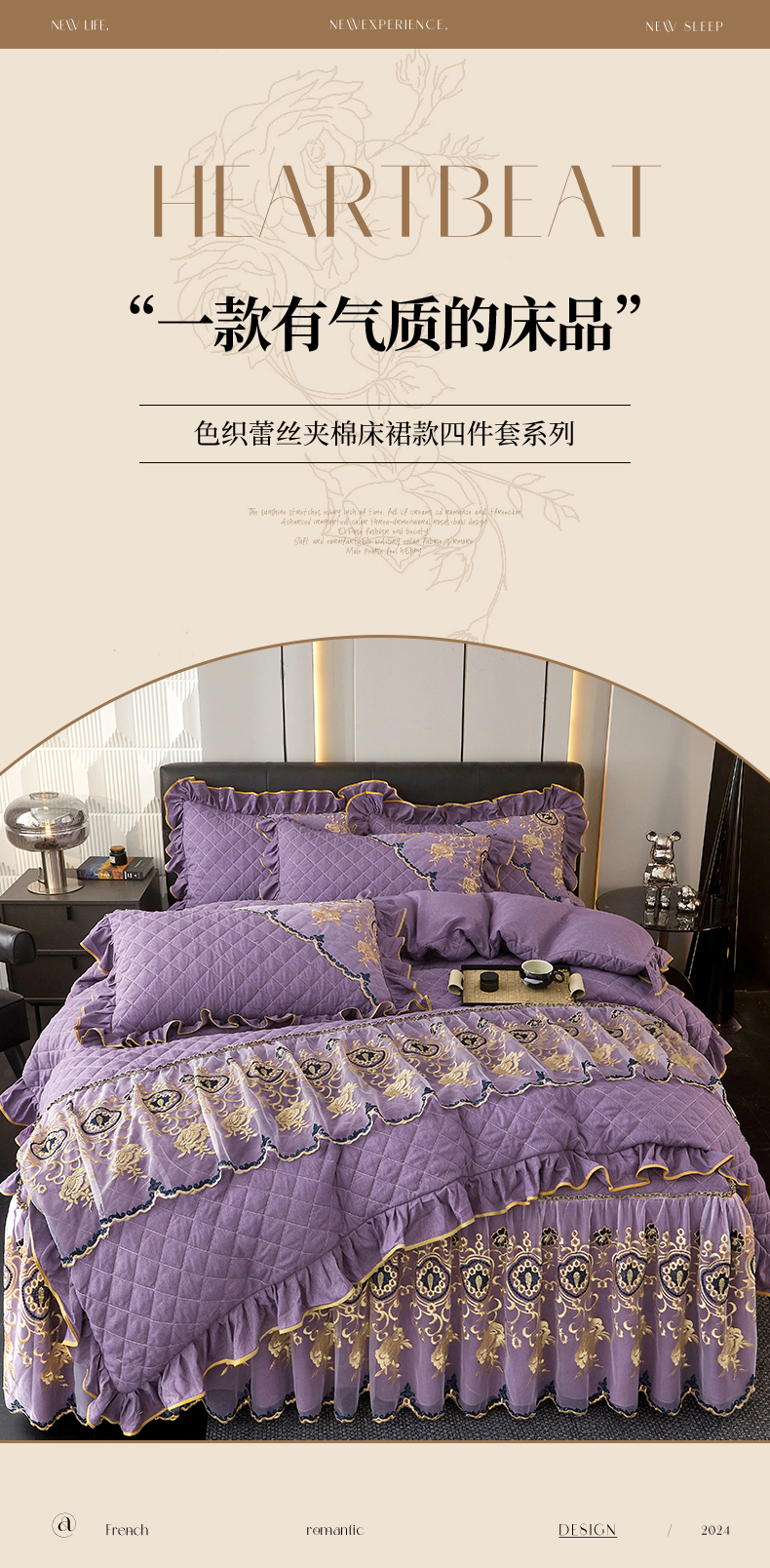 当前位置: 91家纺网 > 商品网购 > 床品套件 > 四件套 > 其它四件套 > 罗艺轩 2024新款色织蕾丝夹棉床裙款四件套-皇家贵族 皇家贵族-魅力紫