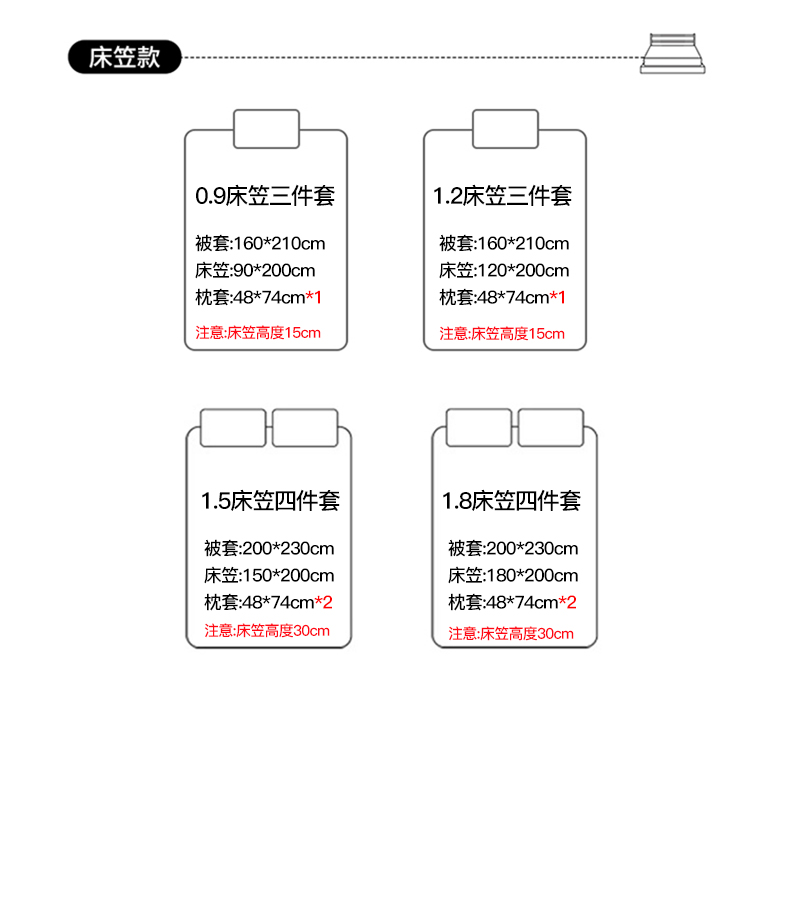 1.2m床笠款三件套(被套160*210) | ¥85.00 |