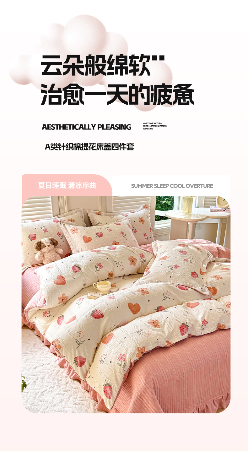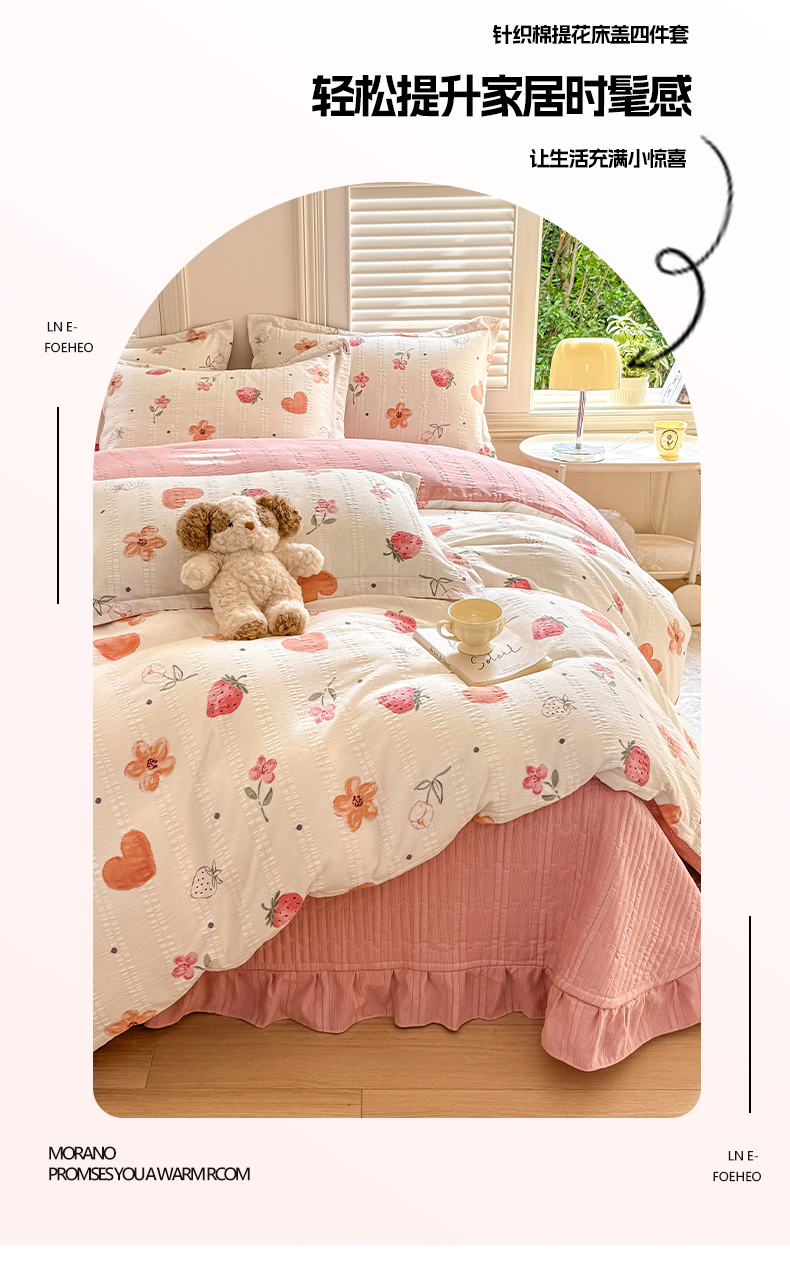 (总)富之航家纺 2024爆款公主风床盖四件套新款小清新提花针织棉床盖四件套,蝶恋花咖,比心,饼干熊,芙蔓,复苏,格调,剪秋,蓝图,梦蝶,蜜桃,莫吉,清欢,素漫,雾里花,相思兰,玉隐