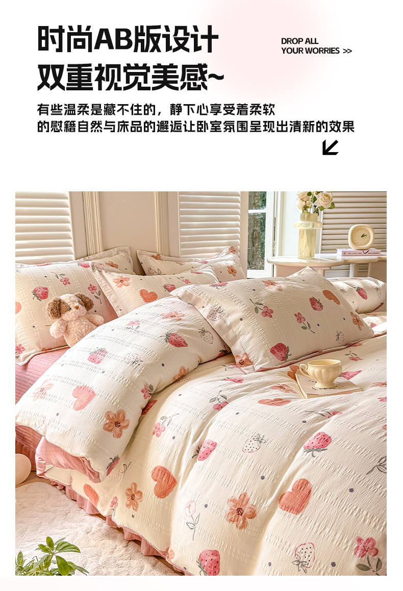 (总)富之航家纺 2025新款全棉印花床盖四件套,格梦语,鈥嬬唺鎶辨牸,蓝屿絮,莓果汀,萌湾曲,青雾蕊,甜心波,童趣甜梦