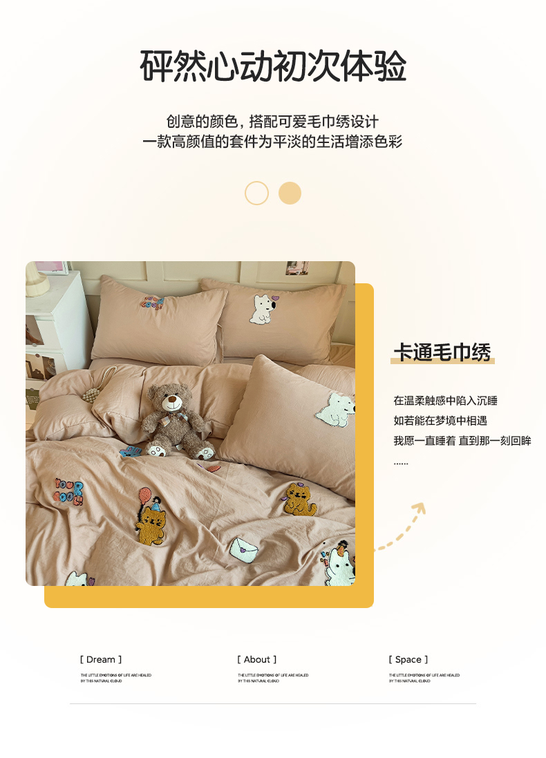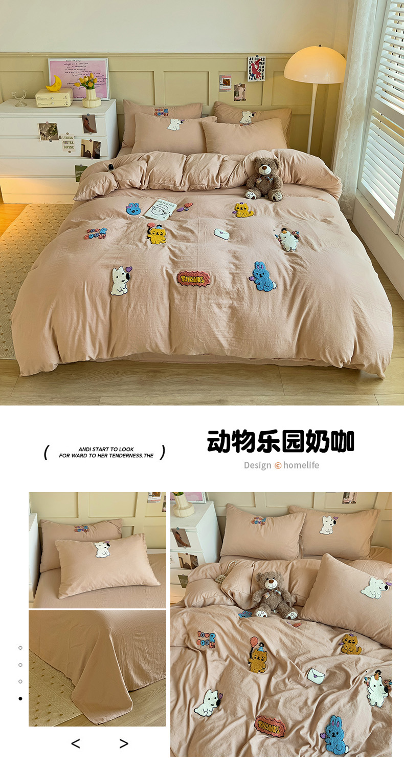当前位置: 91家纺网 > 商品网购 > 床品套件 > 四件套 > 水洗棉四件套 > 韩巢家纺 2024新款四季通用超柔水洗棉毛巾绣四件套-动物乐园系列(提供卖家秀) 动物乐园奶咖