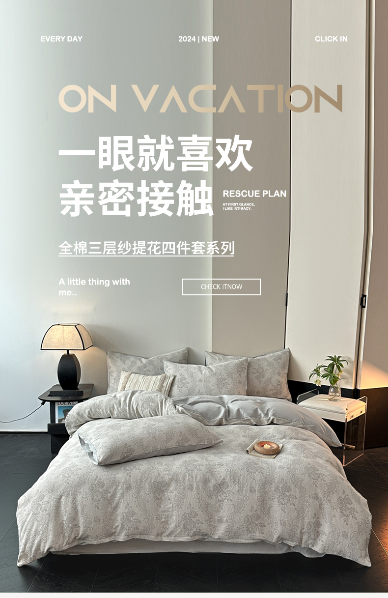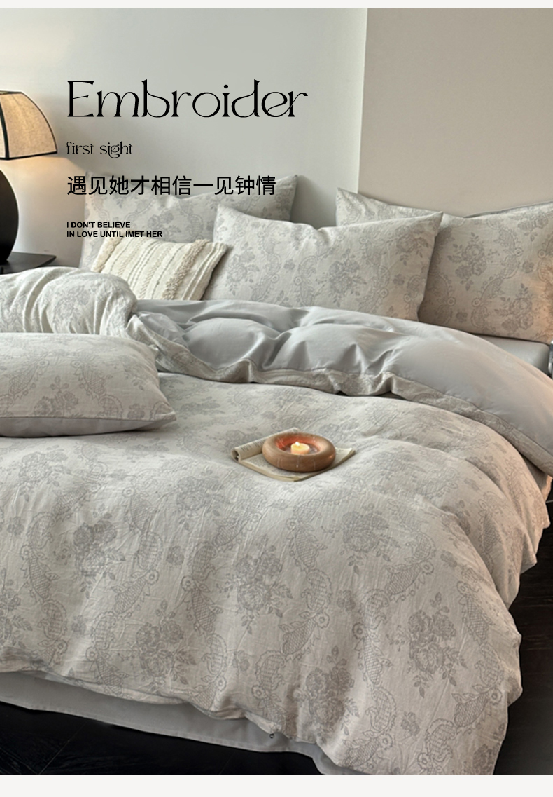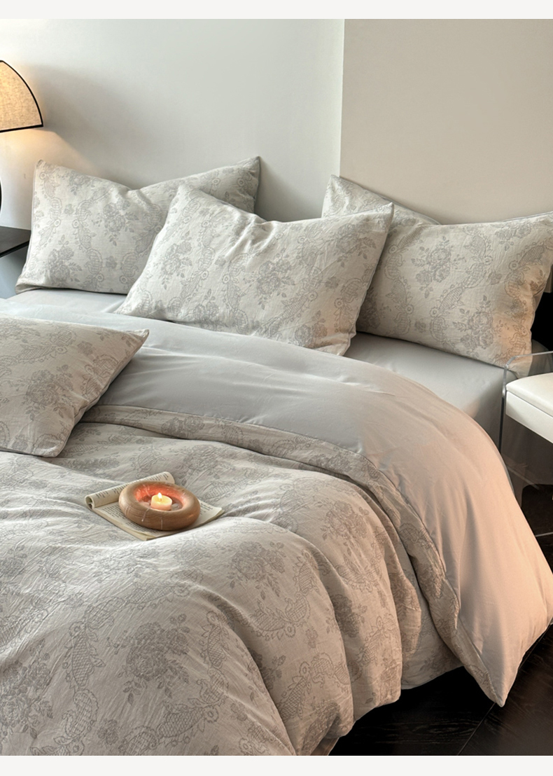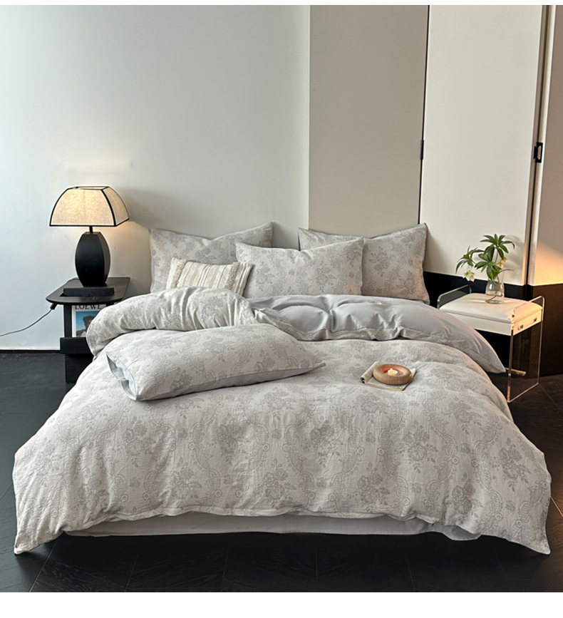 当前位置: 91家纺网 > 商品网购 > 床品套件 > 四件套 > 全棉普通四件套 > 博雅 2024新款全棉提花三层纱磨毛四件套(上图送2000元货款) 玫瑰面纱(灰)