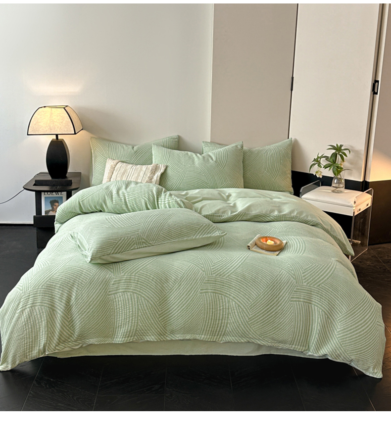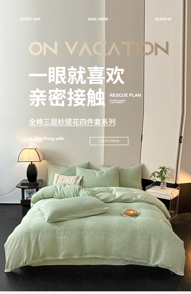 当前位置: 91家纺网 > 商品网购 > 床品套件 > 四件套 > 全棉普通四件套 > 博雅 2024新款全棉提花三层纱磨毛四件套(上图送2000元货款) 西西里(绿)