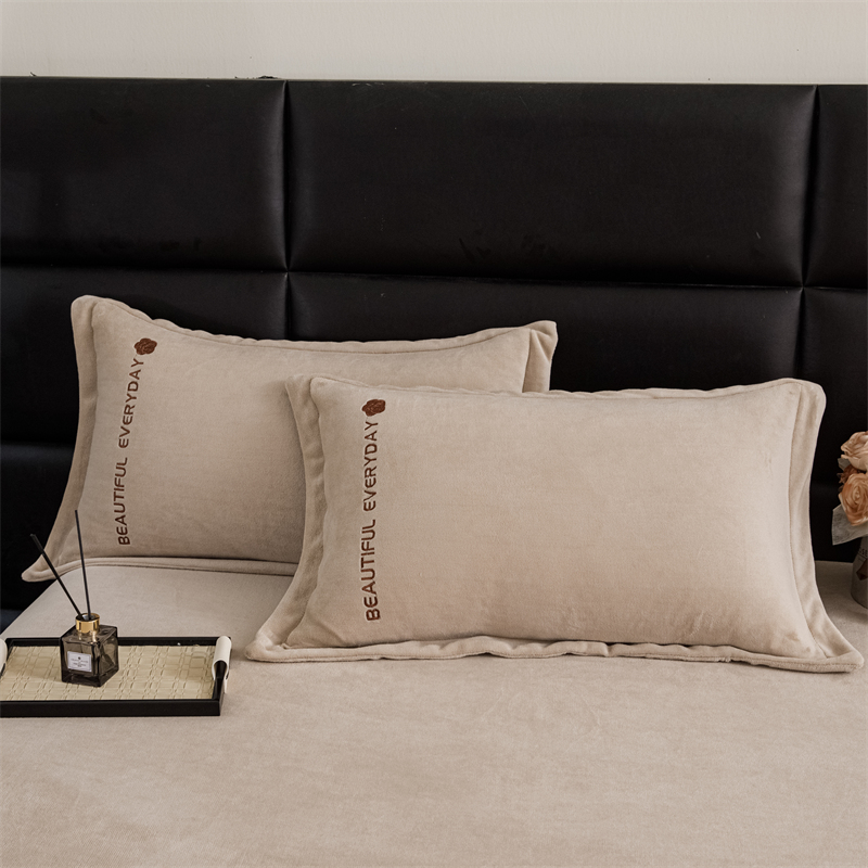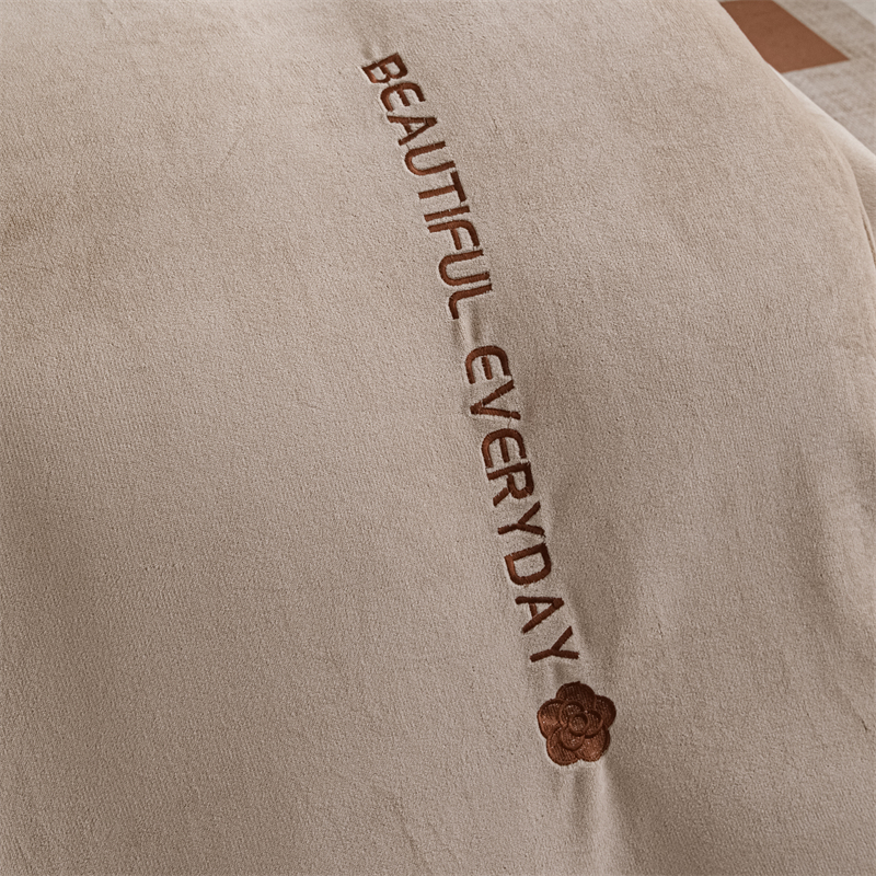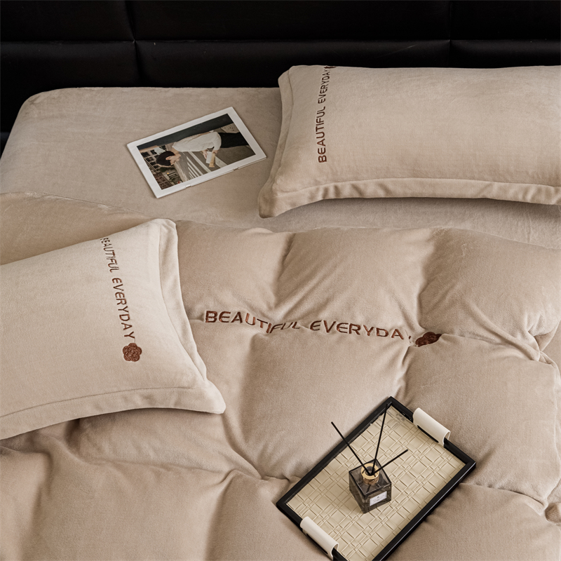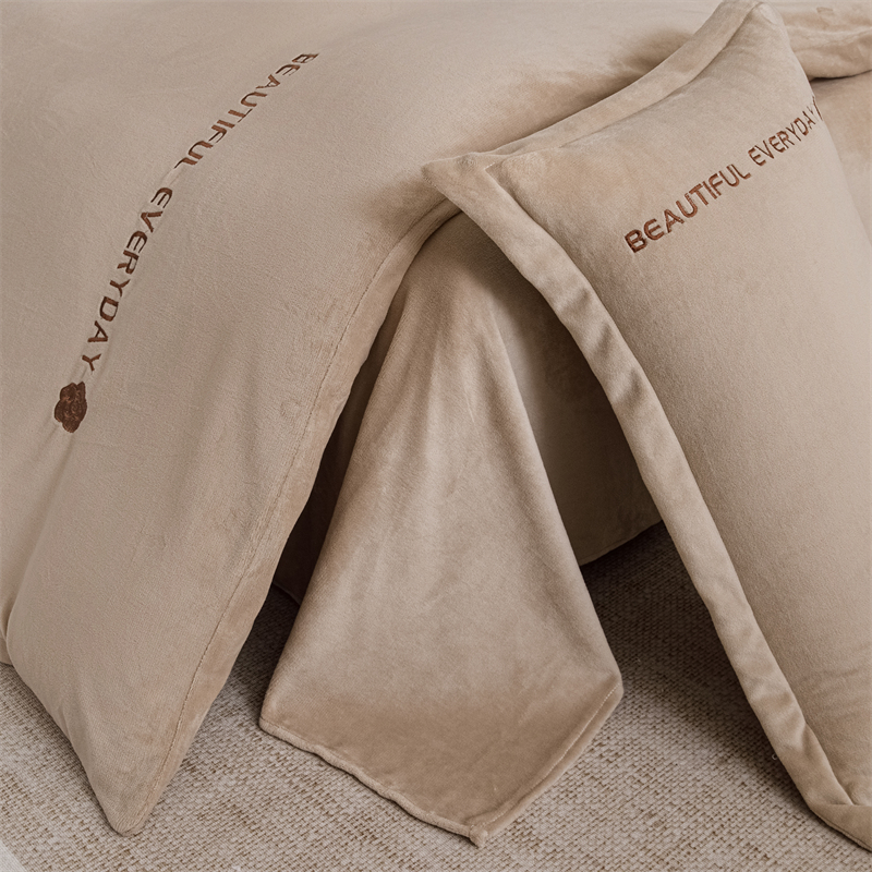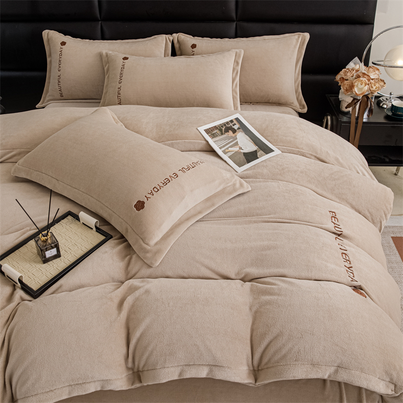 神州川 2024直播爆款高克重保暖加厚纯色刺绣牛奶绒四件套-邂逅-卡其