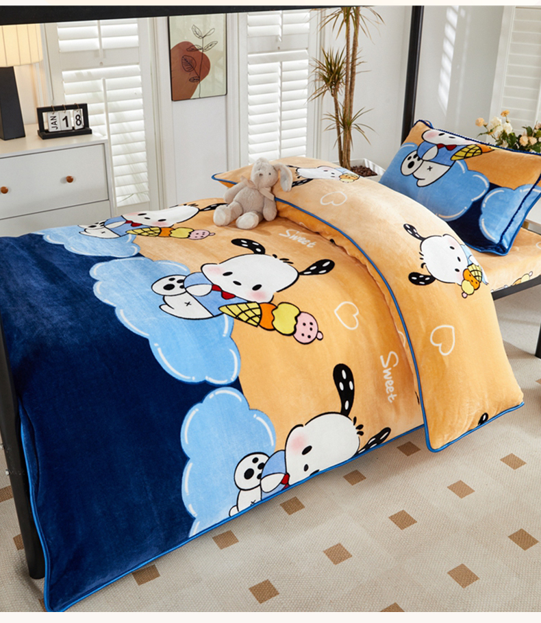 雨洋家纺 2025新款学生季加厚保暖牛奶绒金貂绒婴儿宝宝学生三件套 帕莎狗