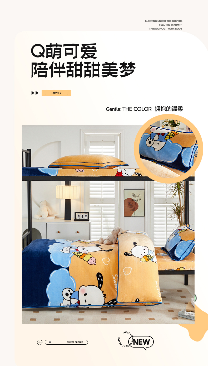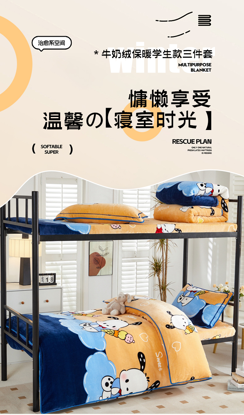 (总)雨洋家纺 2025新款学生季加厚保暖牛奶绒金貂绒婴儿宝宝学生三件套 ,蝶恋,毛线熊,都市生活,快乐时光,魔法库洛米,帕莎狗,小海豚,企鹅,小樱桃,艾伦斯特,爱心箭,荷塘月色,可爱兔,满天星,心动时刻,真爱永恒,灰色条格,繁华似锦,绅士品格,八方来财,拉布布,慕丝,一鹿有你