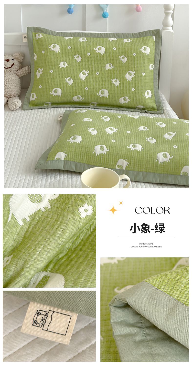 商品名称:2024新品色织立体提花全棉三层纱布夹棉枕套 小象-绿