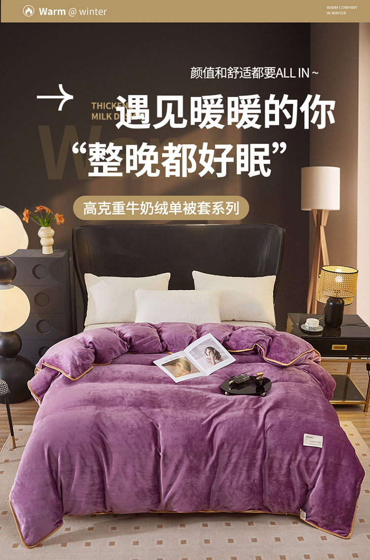 商品名称:绣女坊 2024新款牛奶绒220克-单被套 单被套紫色