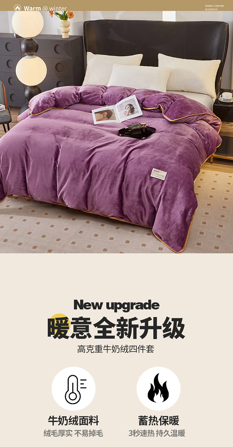 2023牛奶绒保暖四件套韩版蕾丝花边,紫色,松花绿,灰色,豆沙,宾利蓝