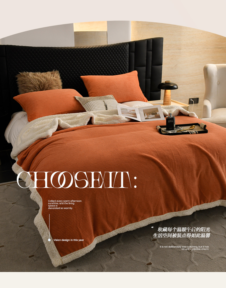 商品名称:网客家纺 2024新款马克提花毯毛毯毯子 橘色