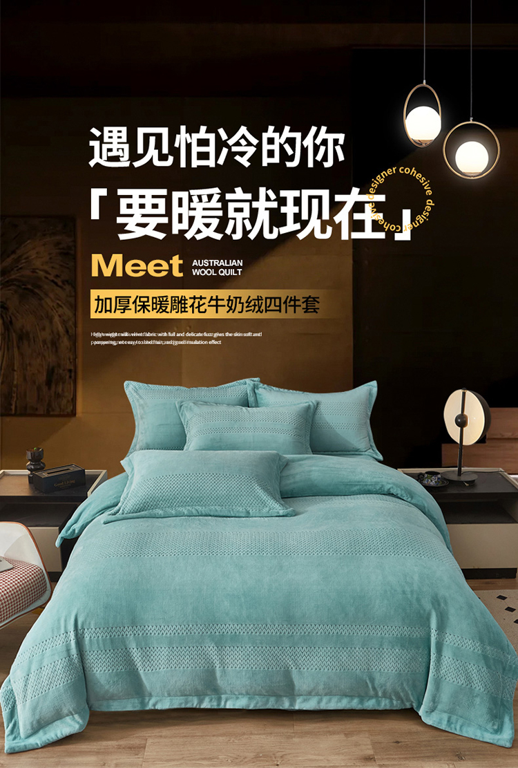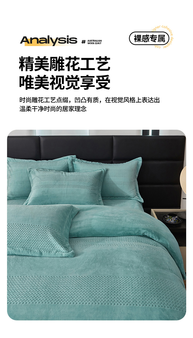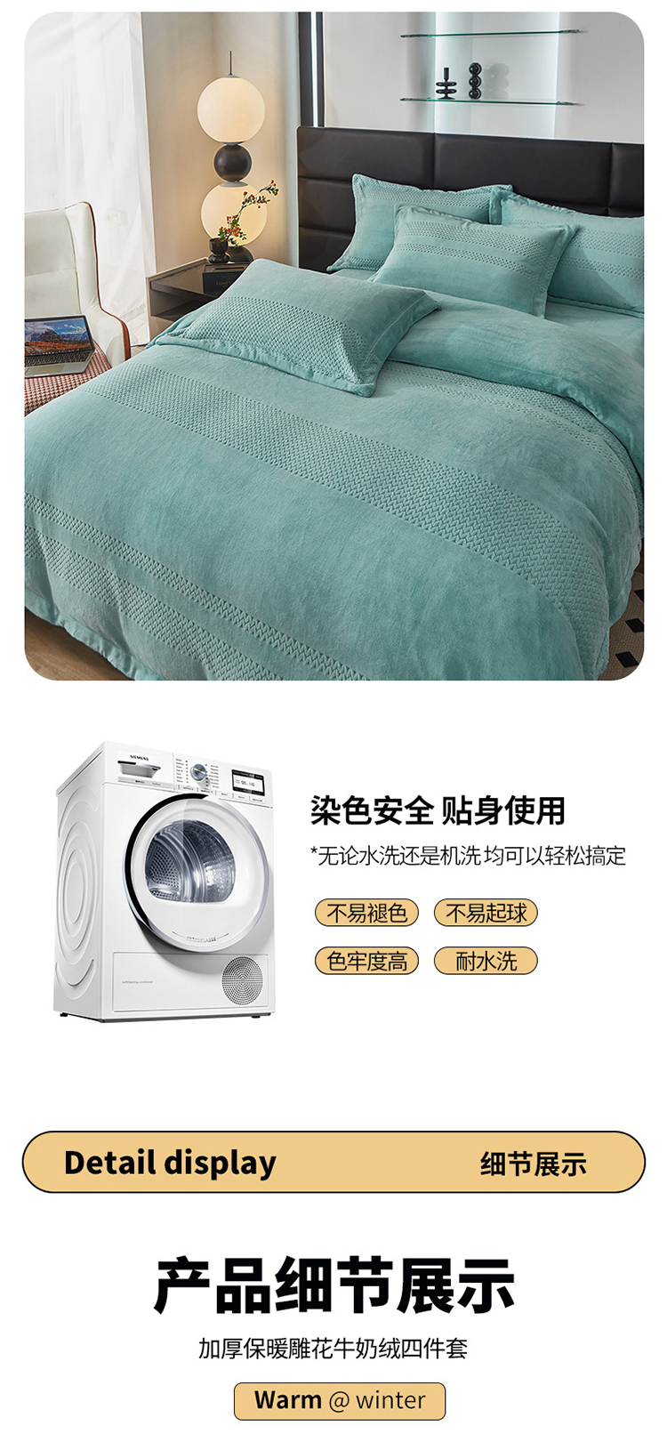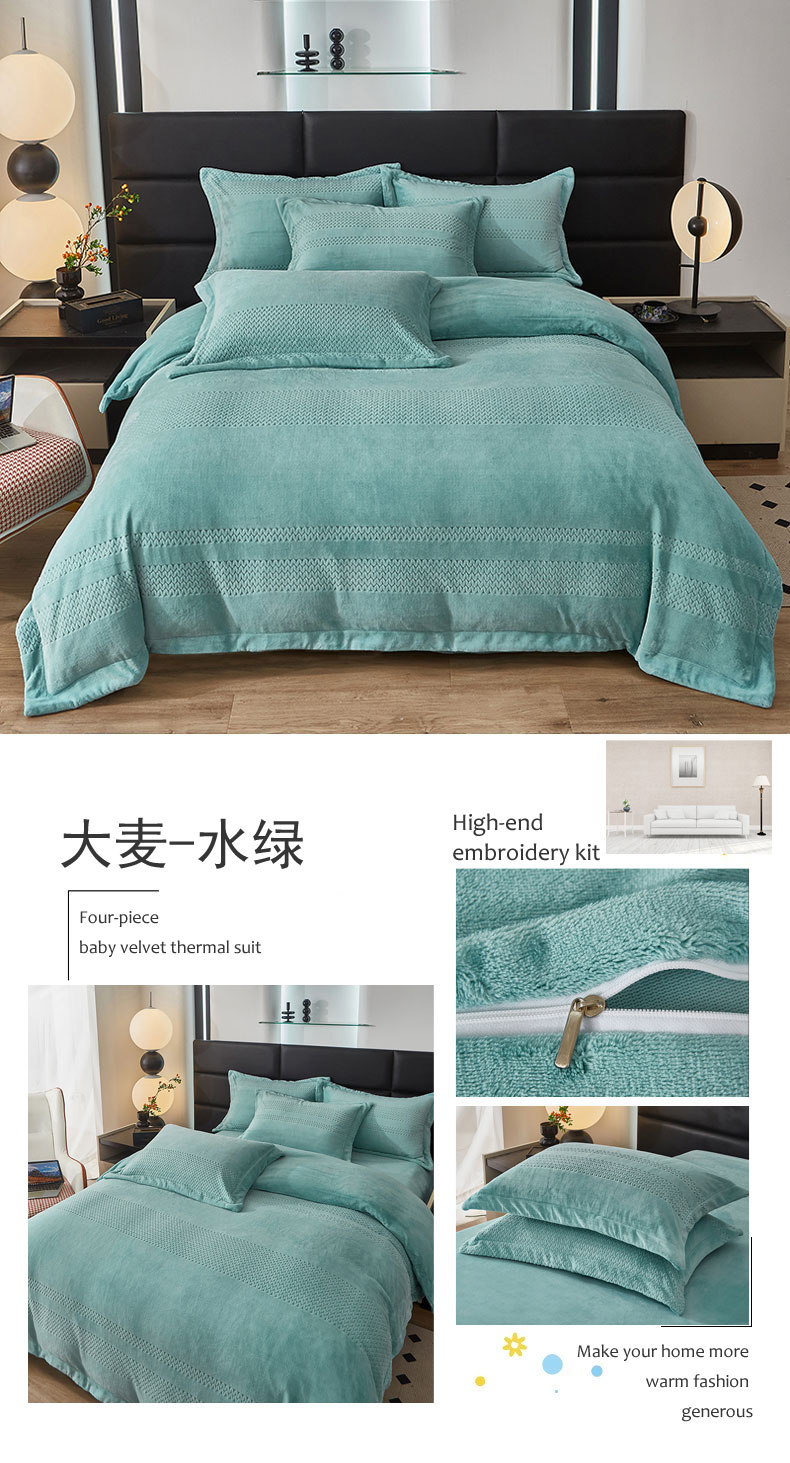 商品名称:绣女坊 2024新款雕花绒-大麦四件套 大麦-水绿
