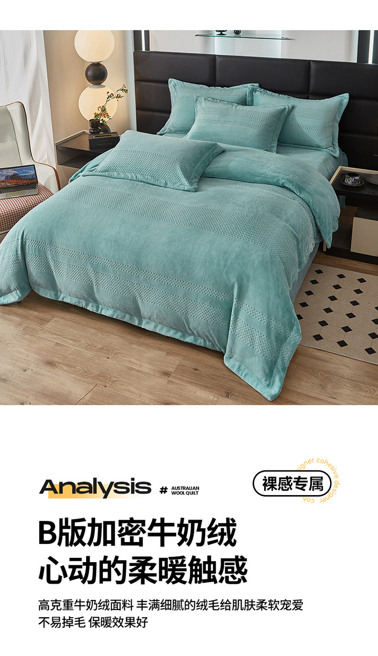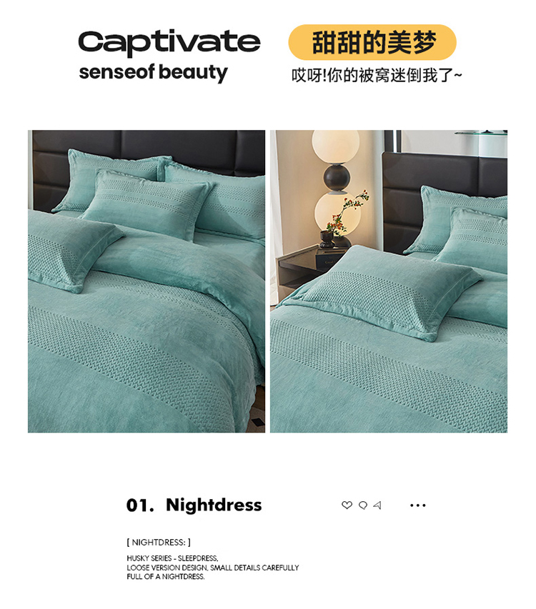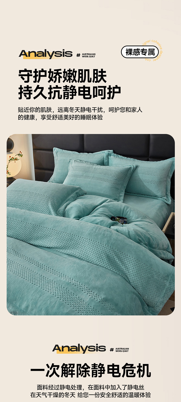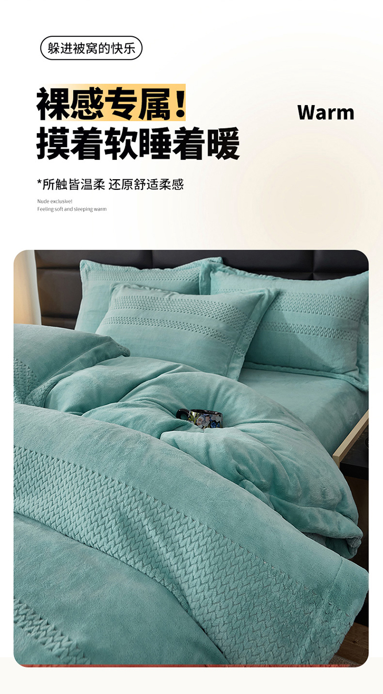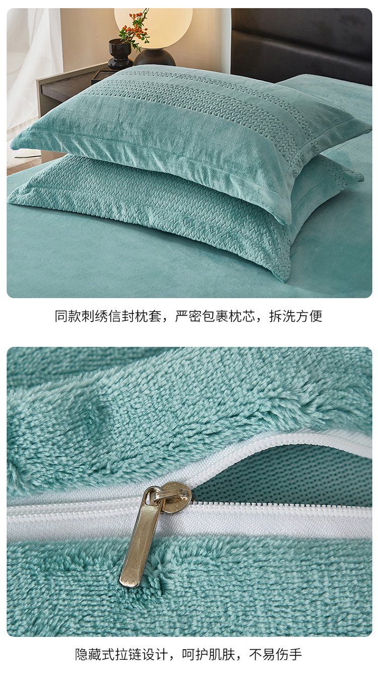商品名称:绣女坊 2024新款雕花绒-大麦四件套 大麦-水绿