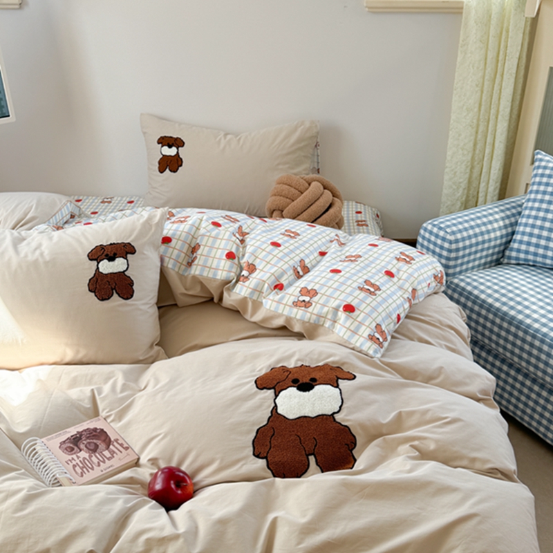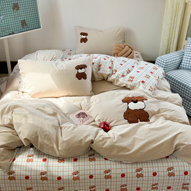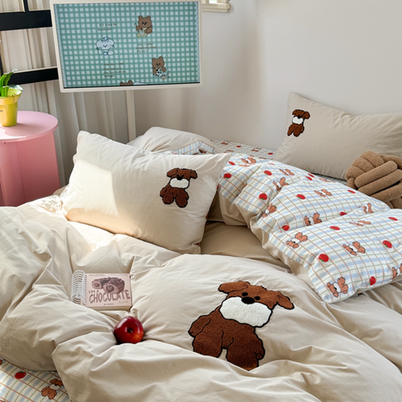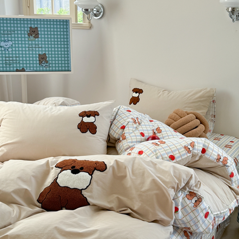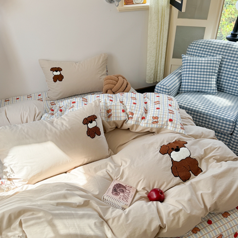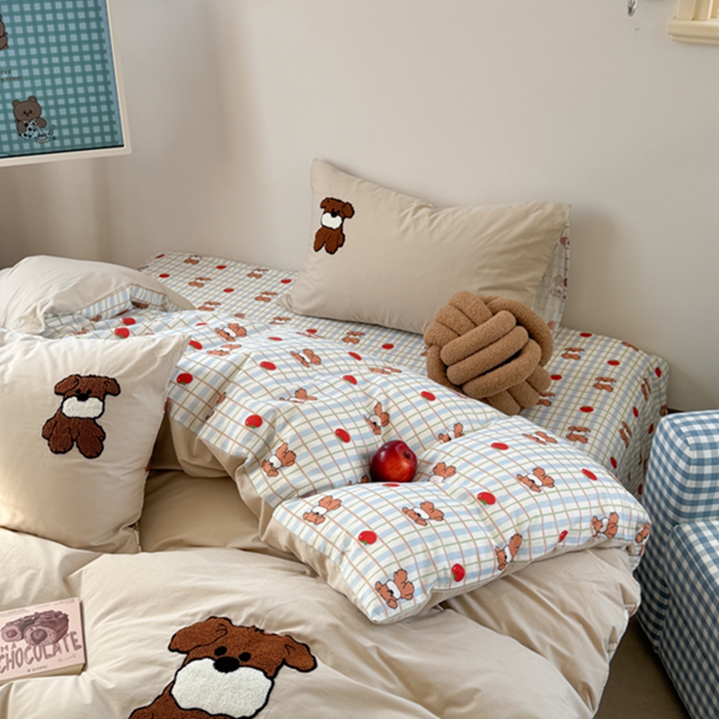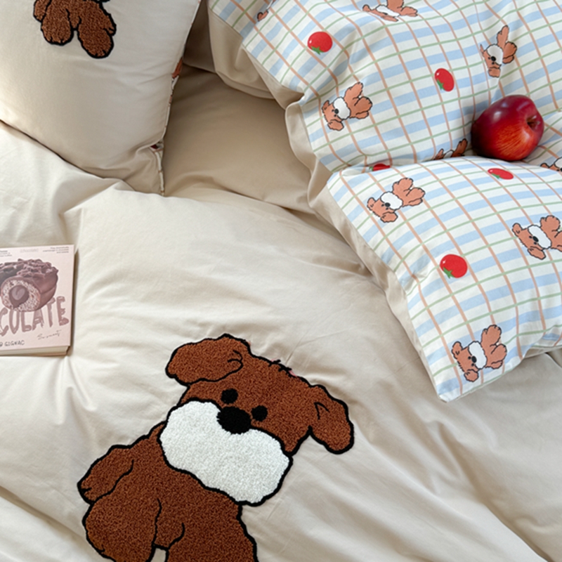 商品名称:柚子 2024新款全棉水洗印加绣小可爱四件套 咖啡狗