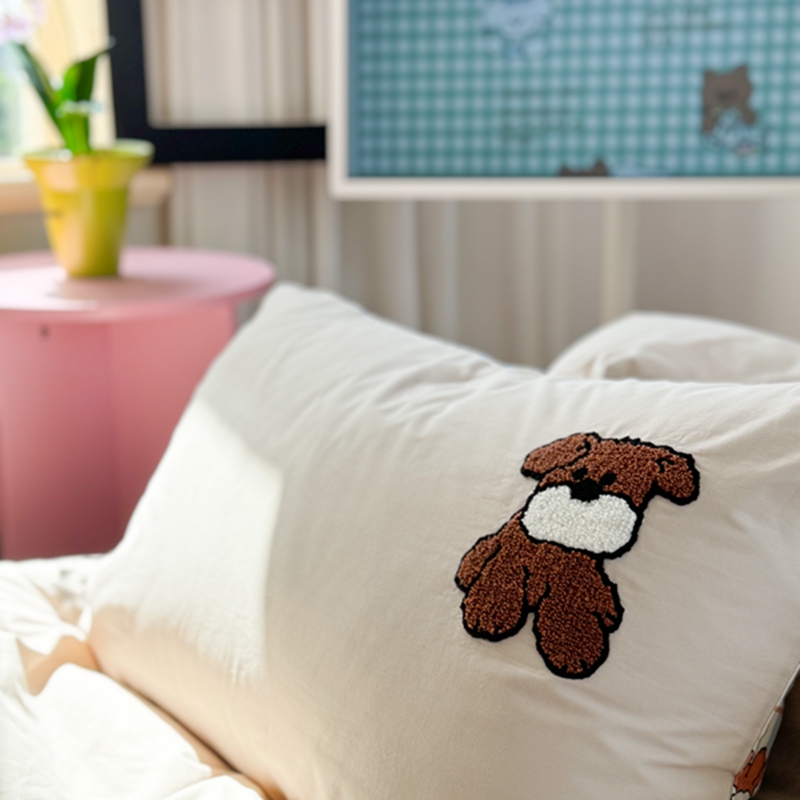 柚子 2024新款全棉水洗印加绣小可爱四件套 咖啡狗