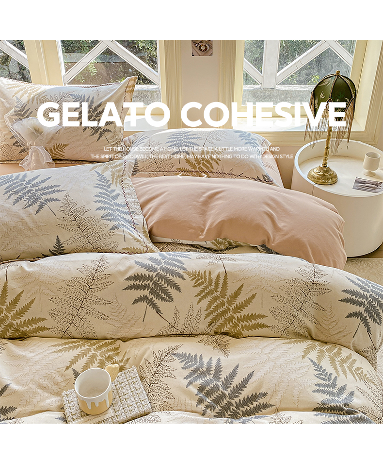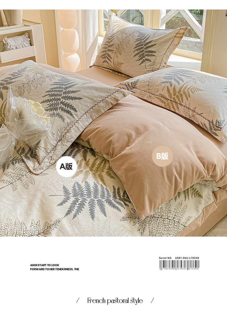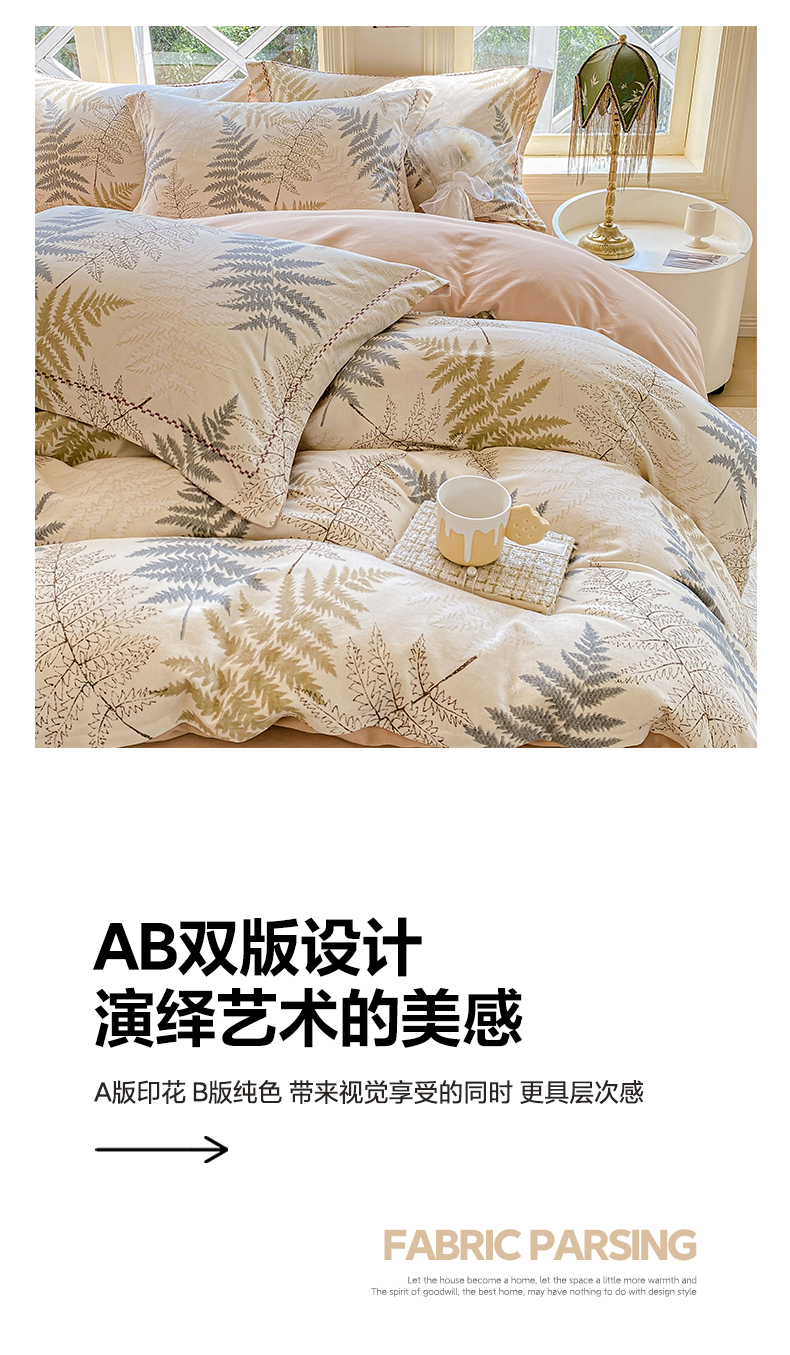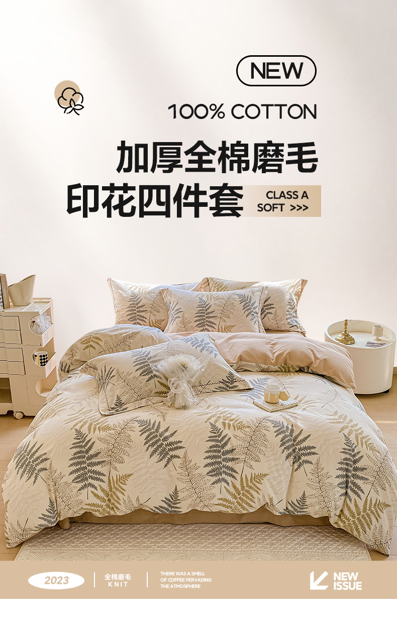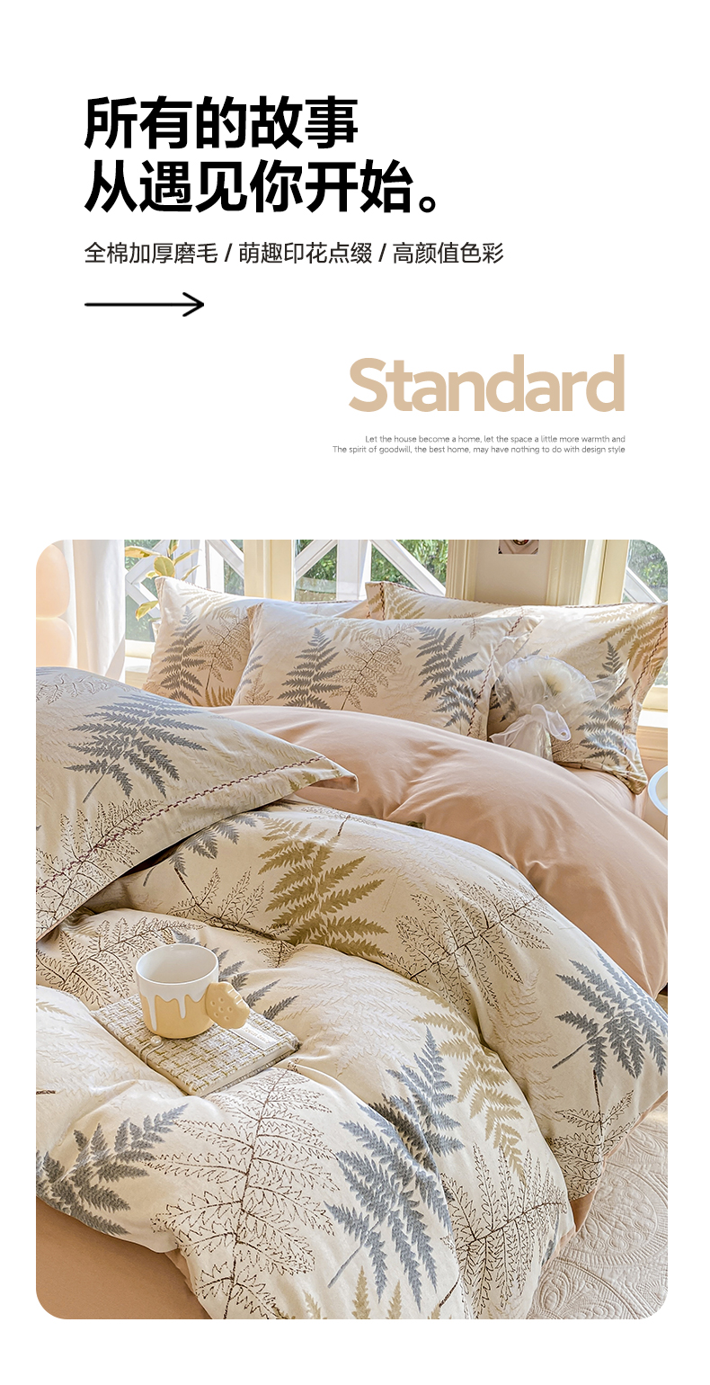 宜家坊 2024秋冬新款全棉超柔加厚生态磨毛四件套 叶语柔情