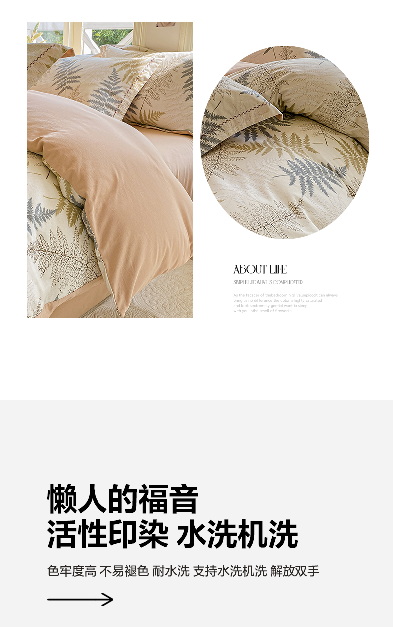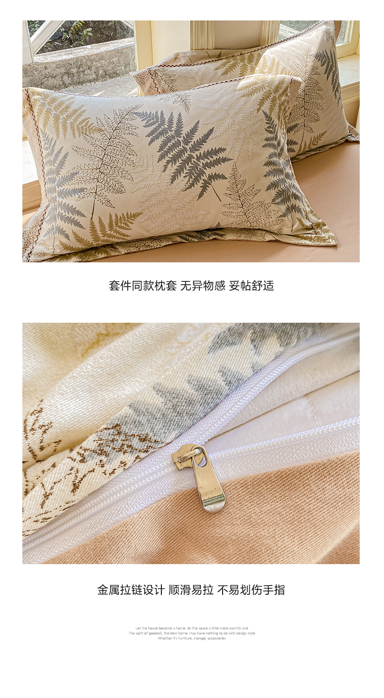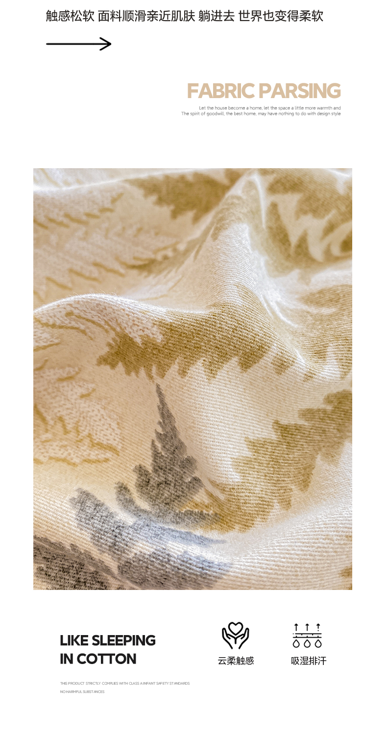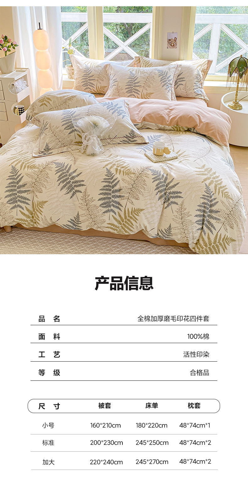商品名称:宜家坊 2024秋冬新款全棉超柔加厚生态磨毛四件套 叶语柔情