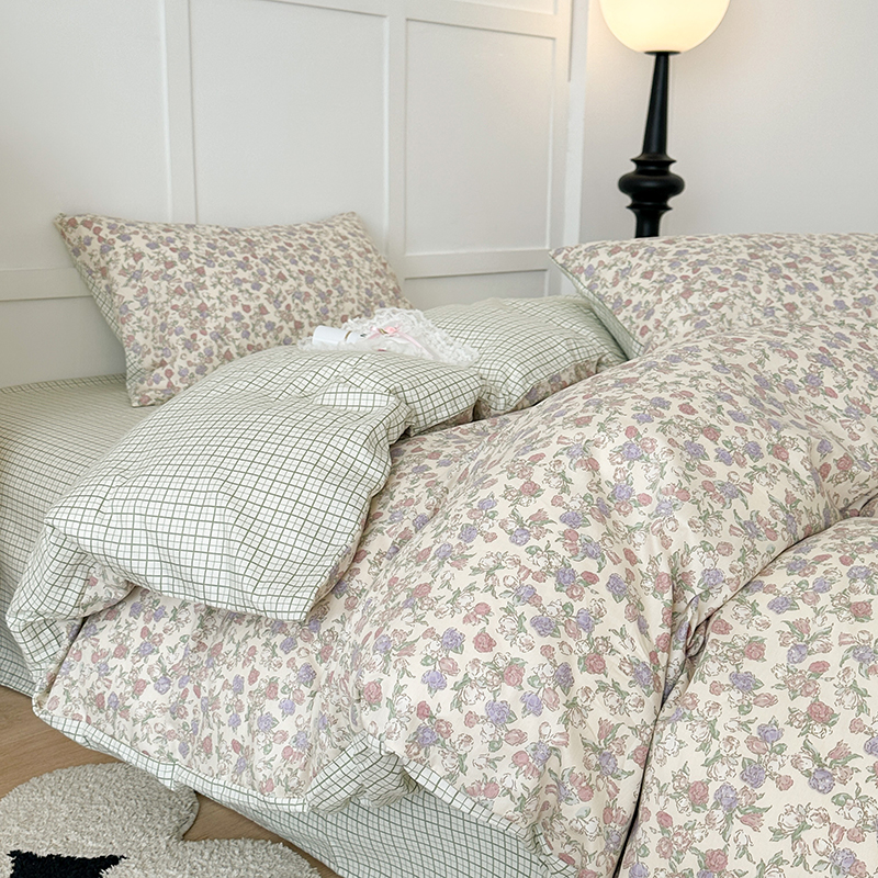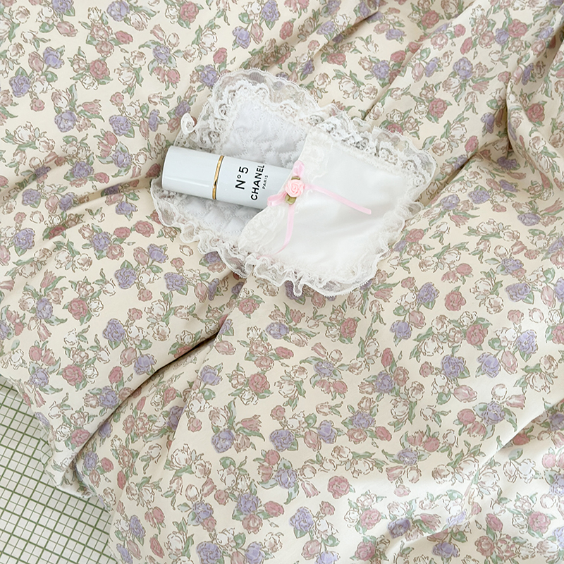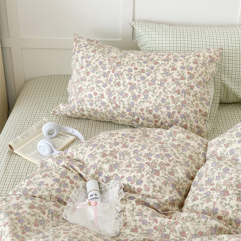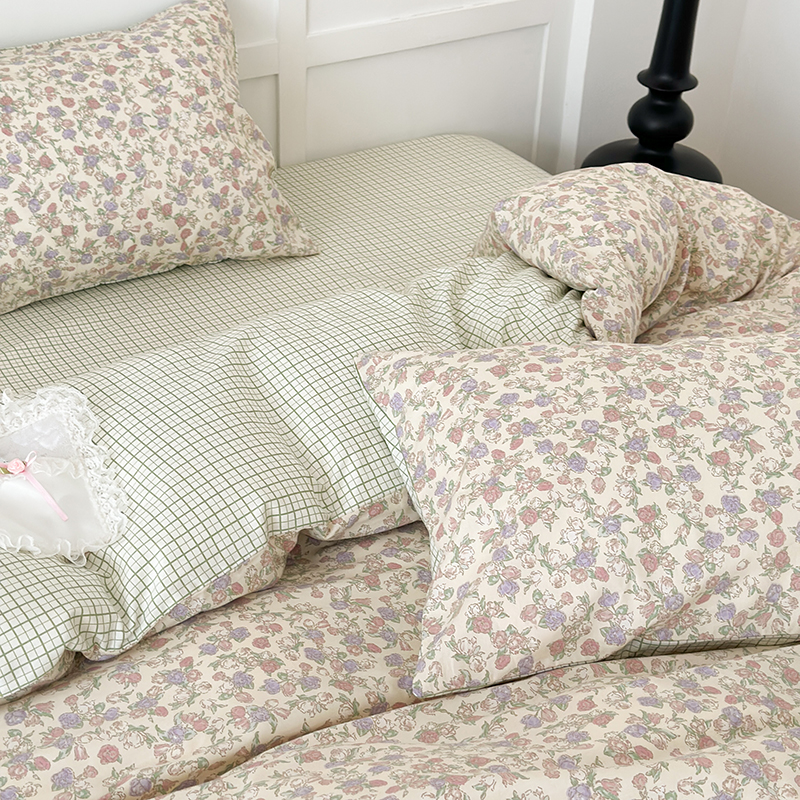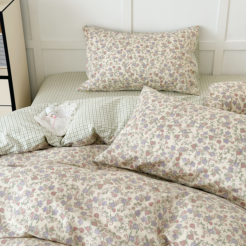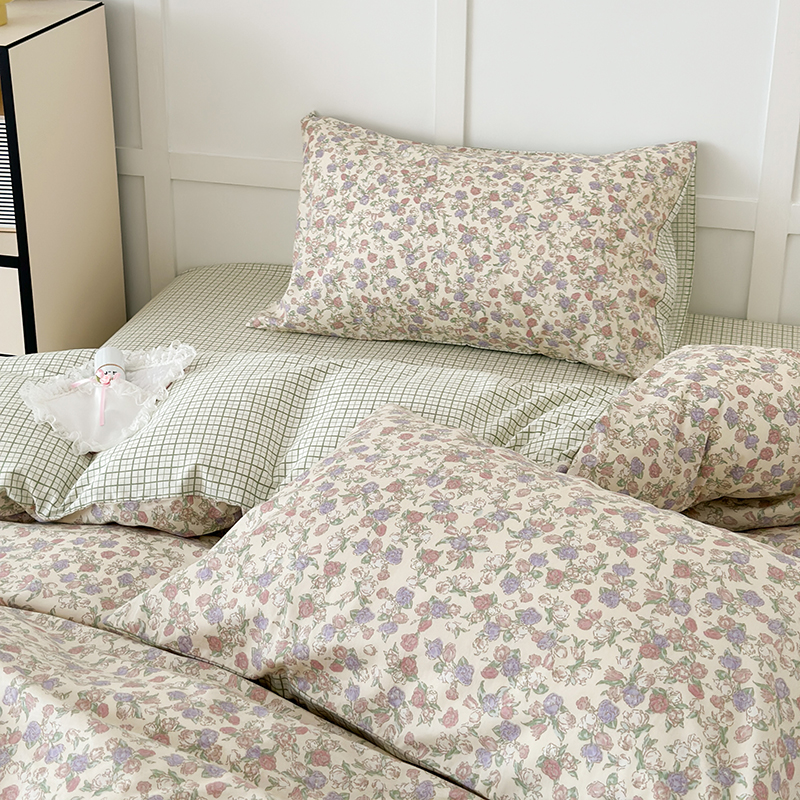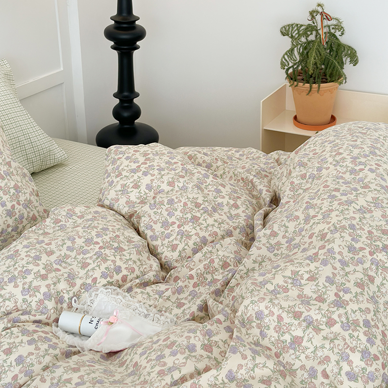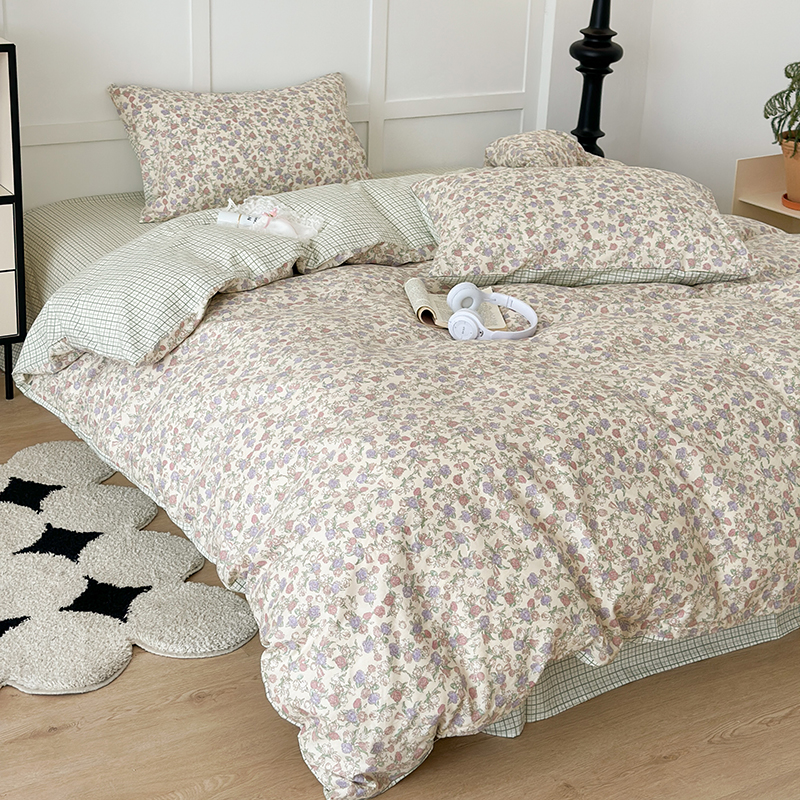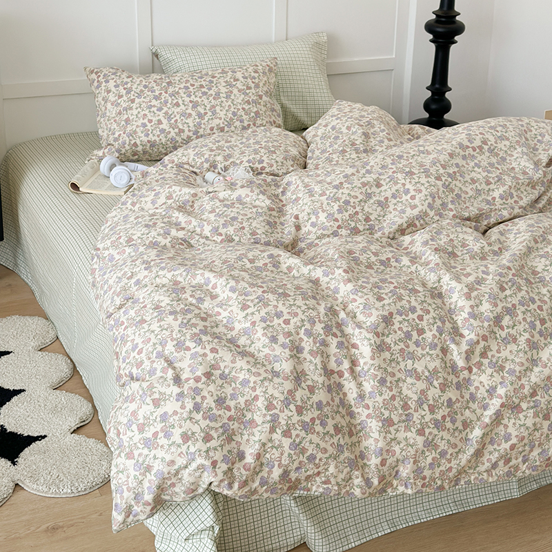 (总)昔可家纺 2023新款全棉小花系列四件套,柏林少女,小小的樱桃,紫色葡萄