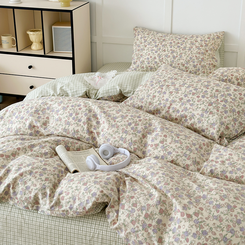 (总)昔可 2023新款学生季全棉四件套-小花系列,柏林少女,花野迷踪,少女粉草莓,微熏海棠,夏茉莉,小兰花,小小的樱桃,紫色果果,紫色葡萄