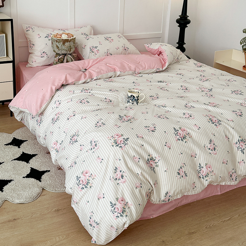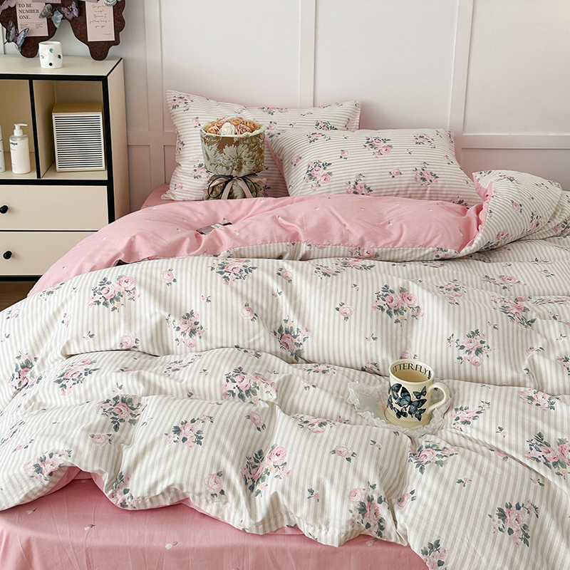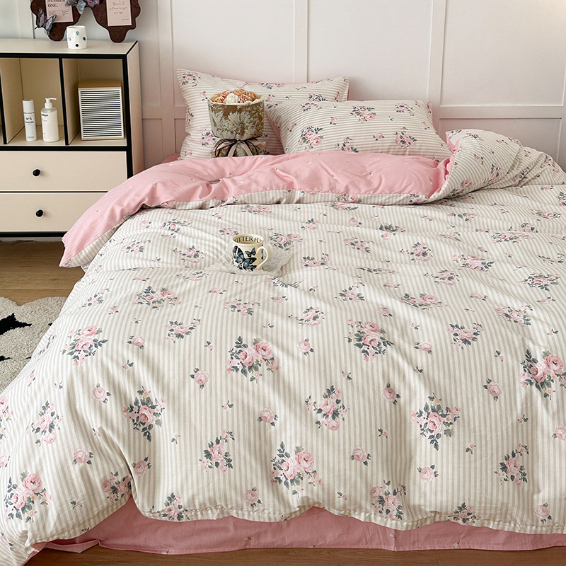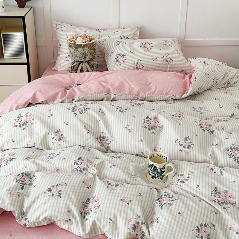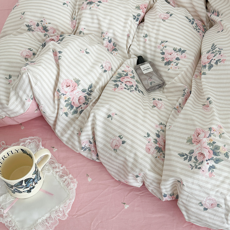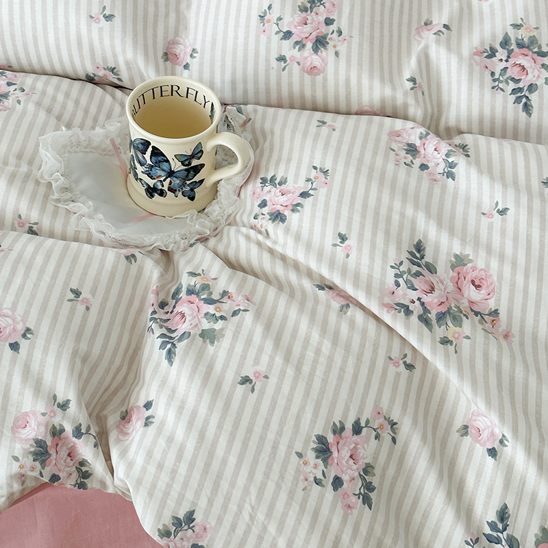 昔可家纺 2024新款13372全棉亲肤四件套-复古系列 竖条春日玫瑰