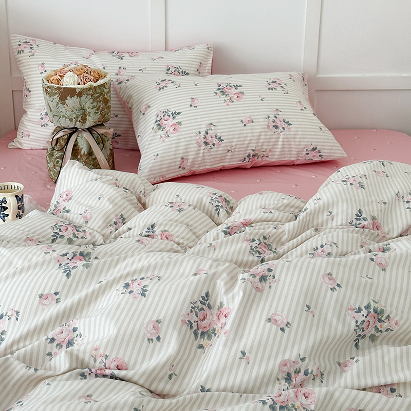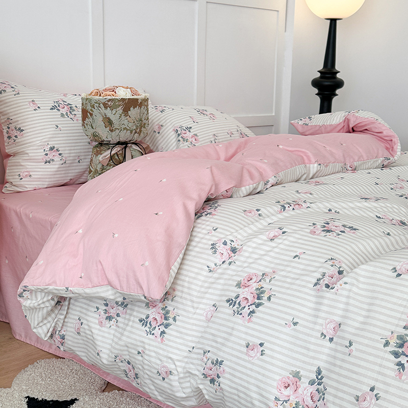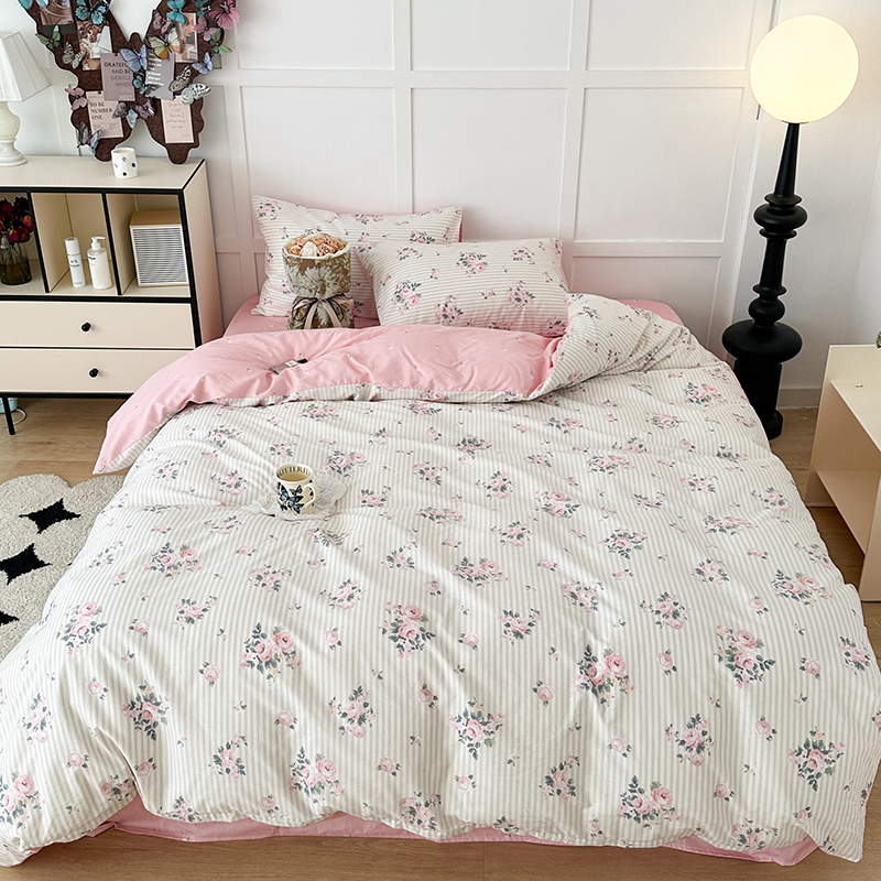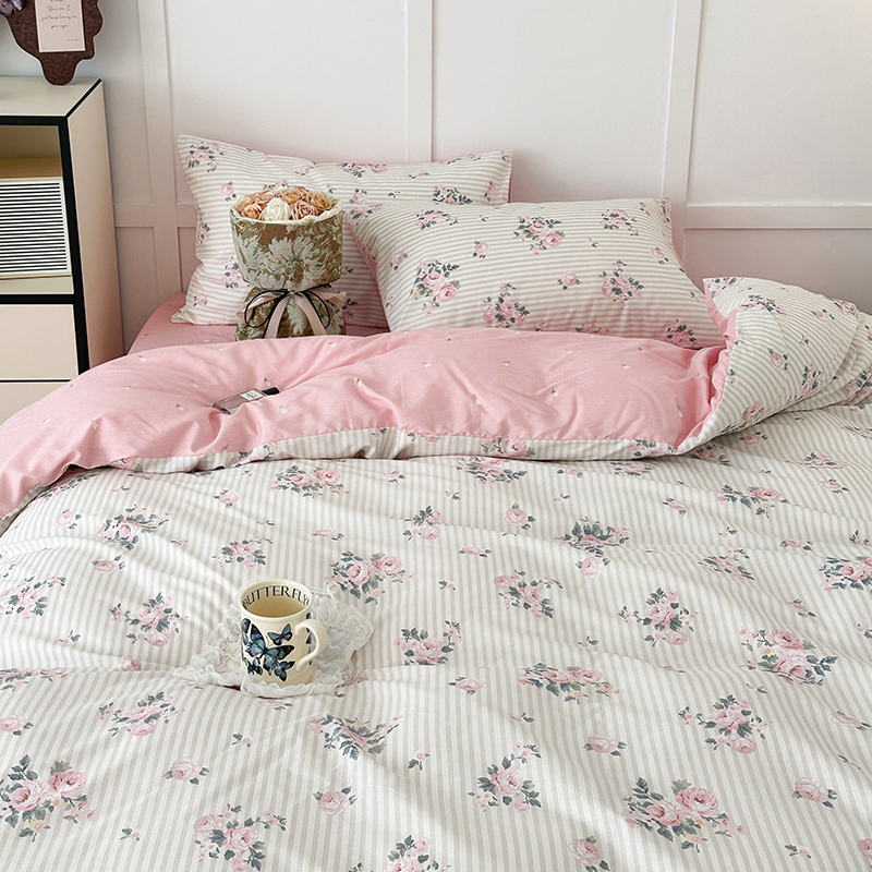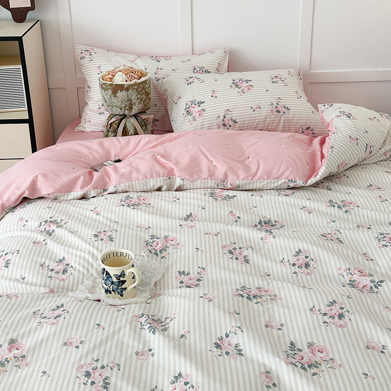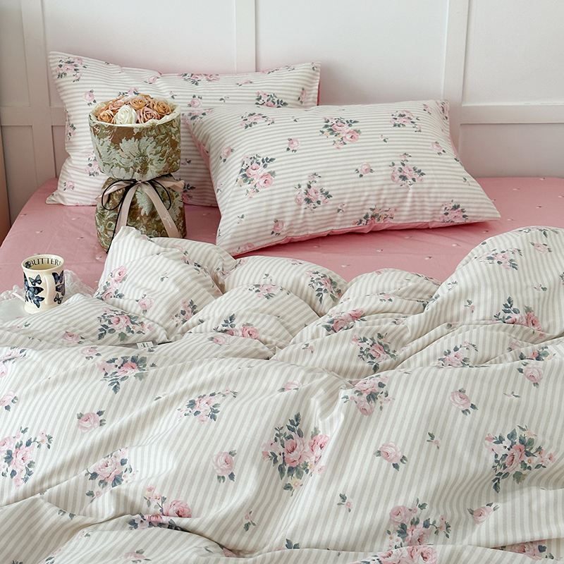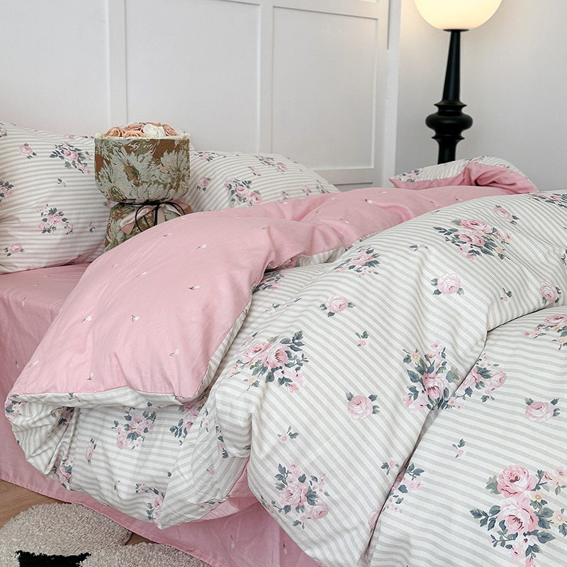 昔可家纺 2024新款13372全棉亲肤四件套-复古系列 竖条春日玫瑰
