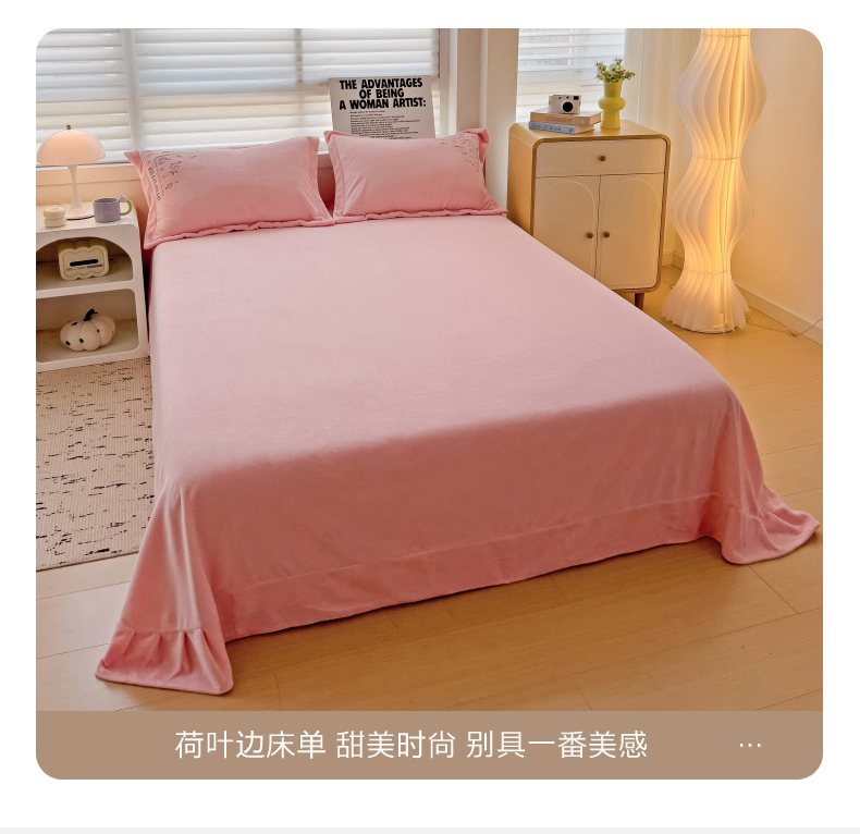 (总)星尚家纺 2024新款加厚保暖全消光牛奶绒夹棉床裙四件套-玫瑰之恋,粉玉,寐紫,浅蓝,水绿
