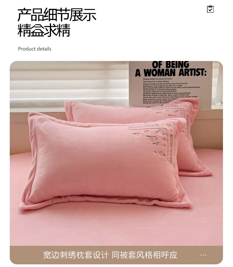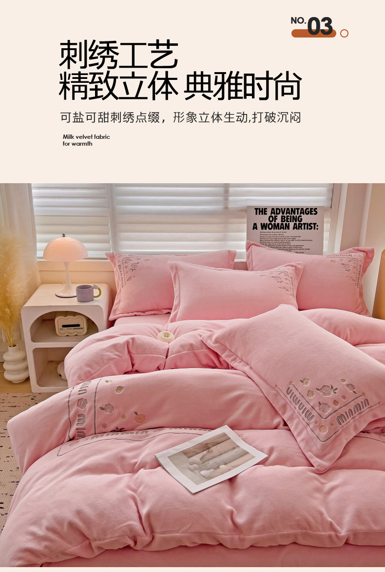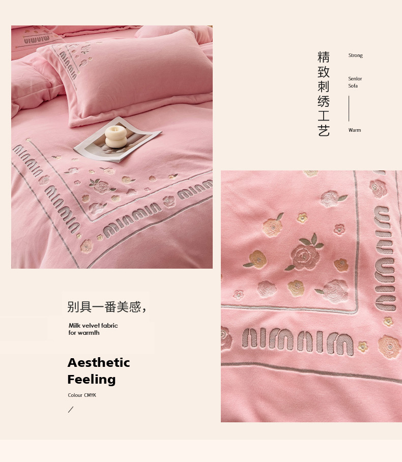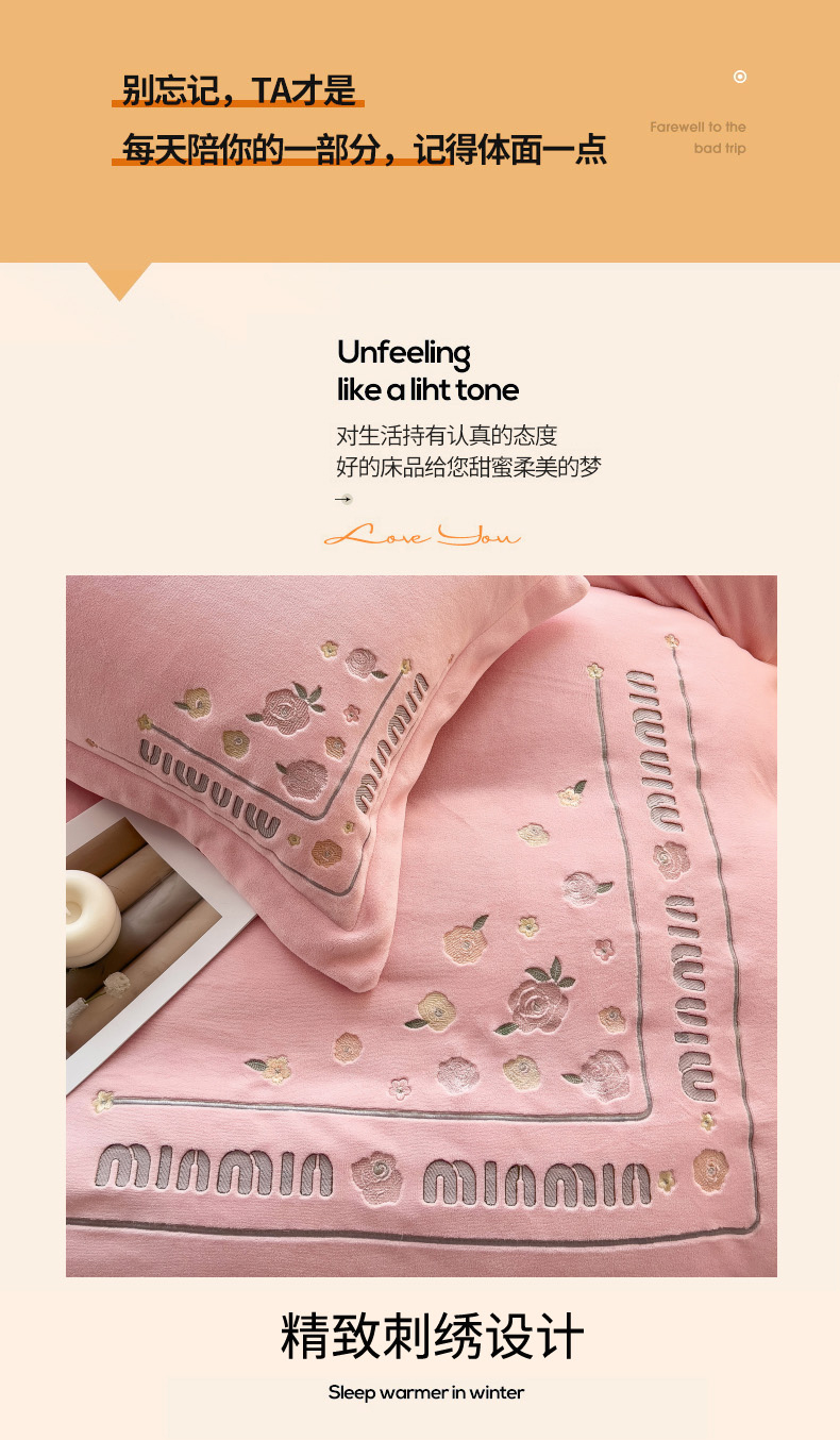 (总)星尚家纺 2024新款全消光230g牛奶绒刺绣保暖四件套-花漾,晨雾绿,豆沙粉,樱花粉