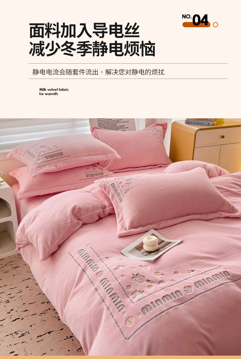 (总)星尚家纺 2024全消光A类230g牛奶绒绣花保暖绒四件套-豹纹,卡其色,奶昔白,时尚灰,芝芝粉