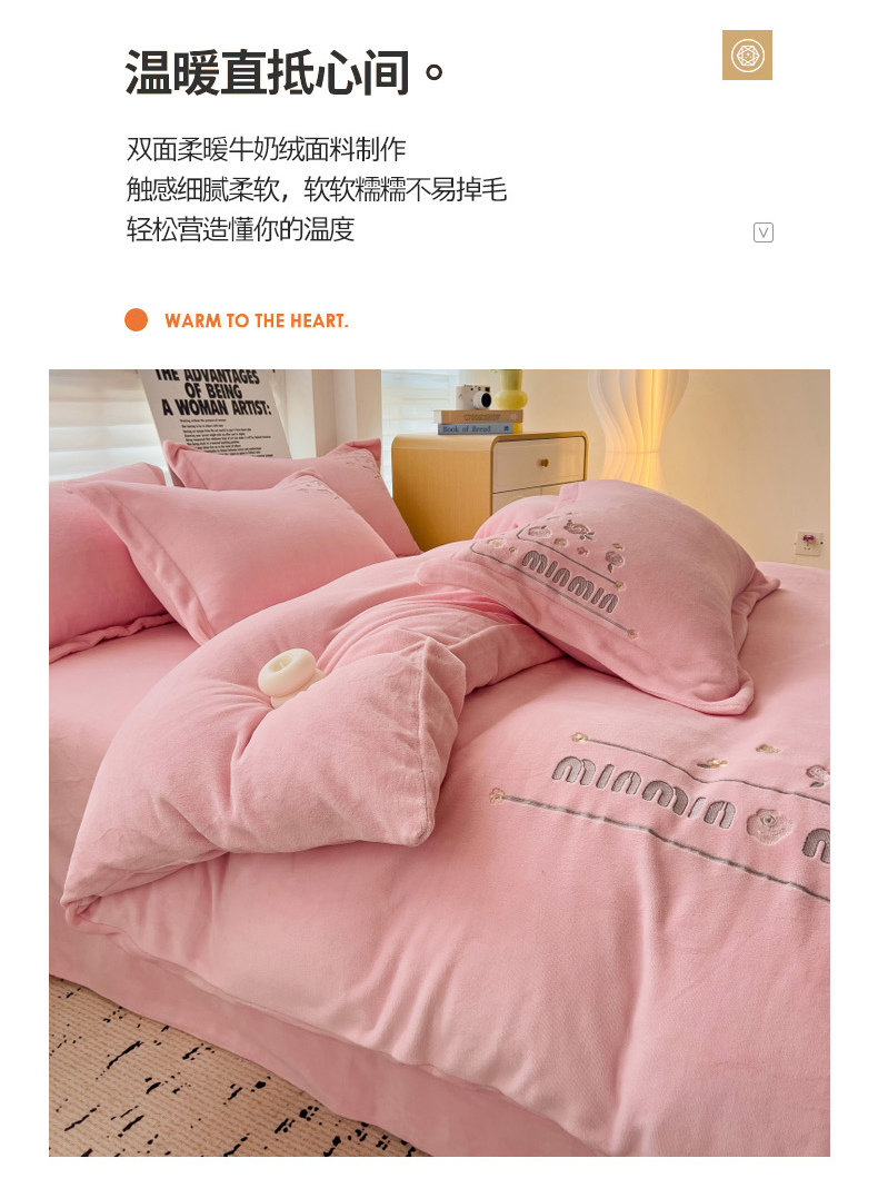 (总)星尚家纺 2025新款全消光A类母婴级加厚保暖牛奶绒绣花刺绣四件套,豆沙粉,卡其棕,梵星绿,孔雀蓝,高级灰,香芋紫,樱花粉