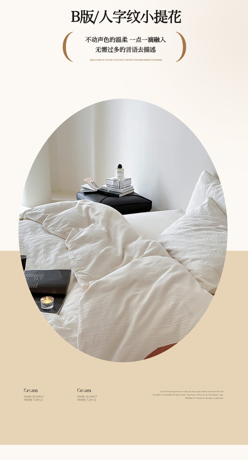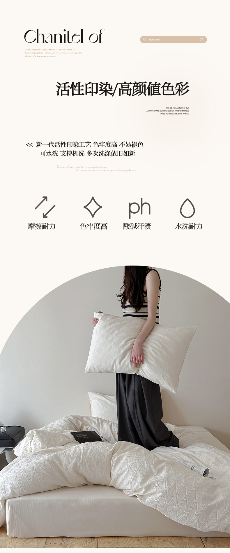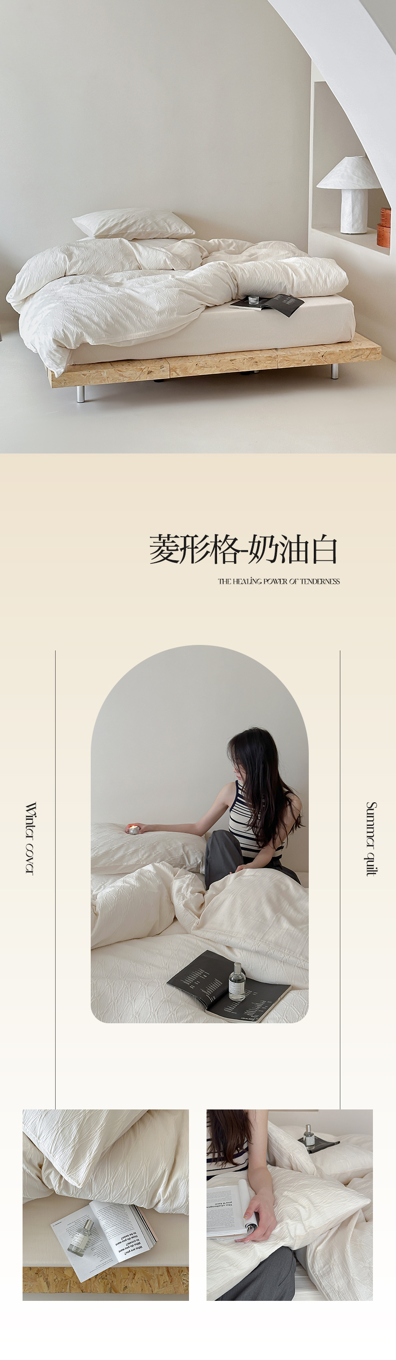 商品名称:山舍家居 2024新款菱形格全棉提花四件套 菱形格-奶油白