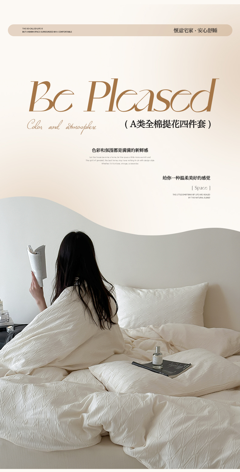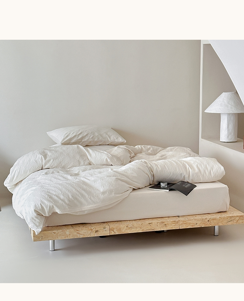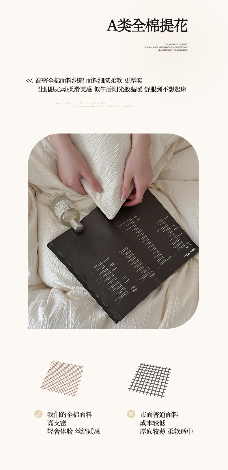商品名称:山舍家居 2024新款菱形格全棉提花四件套 菱形格-奶油白
