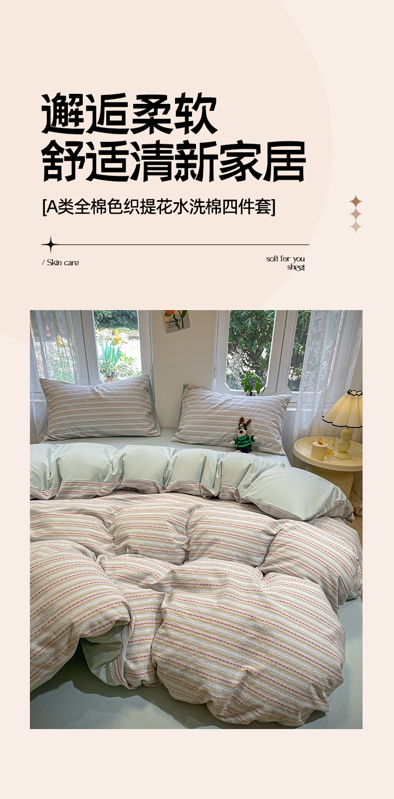 (总)莱茵家居 2024新款色织提花全棉水洗棉四件套