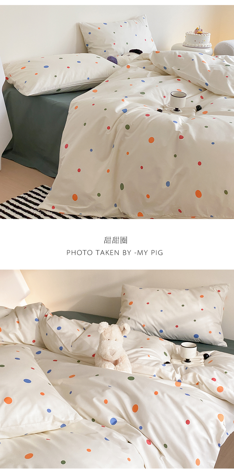 商品名称:Mr.pig猪先生水洗棉 2024新款全棉小清新四件套 灰蓝波点