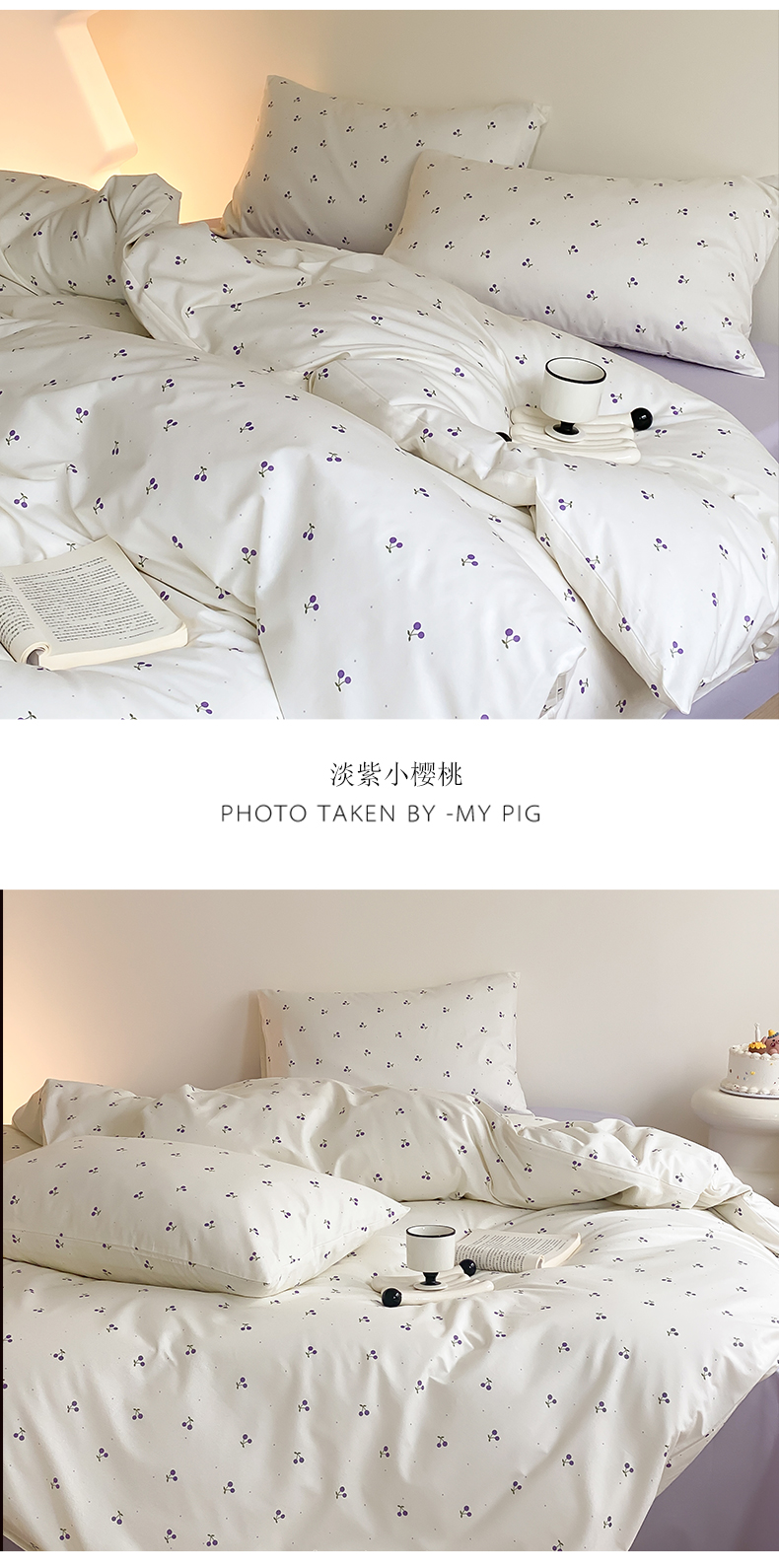 (总)Mr.pig猪先生水洗棉 2026新款全棉水洗棉毛巾绣四件套-花絮(展示价格为控价,实际价格请联系客服),花絮-微微紫,花絮-杏仁白