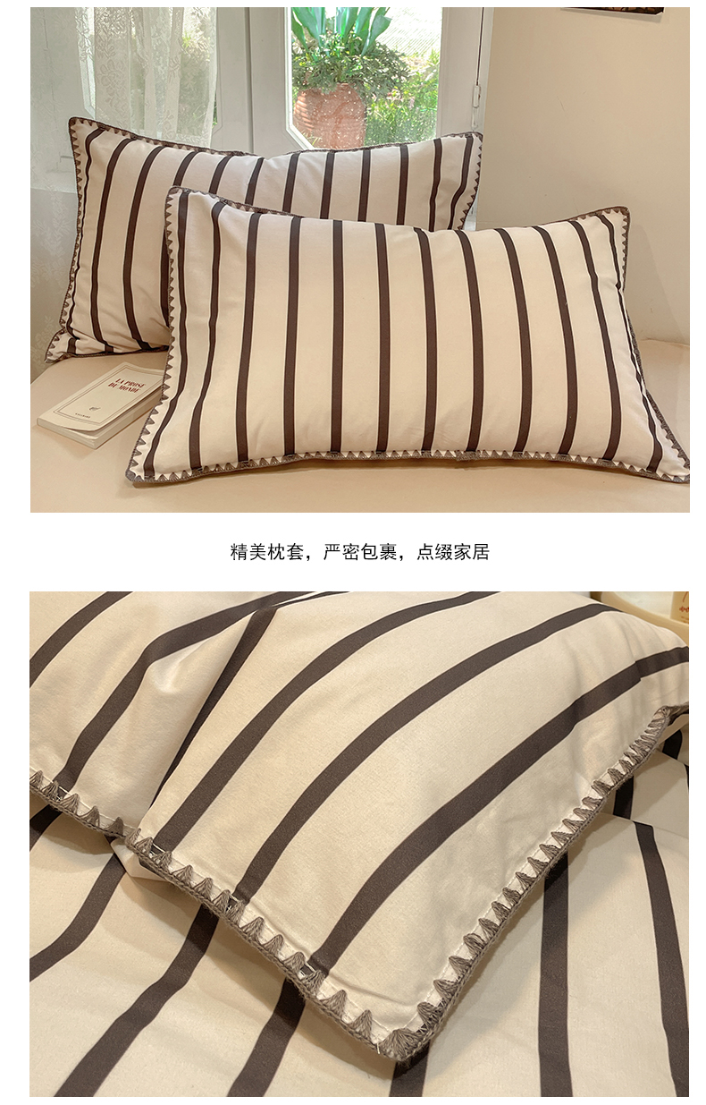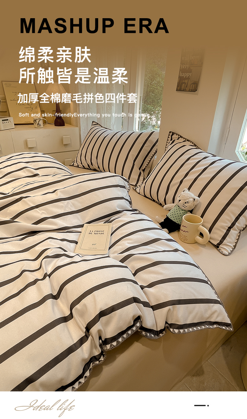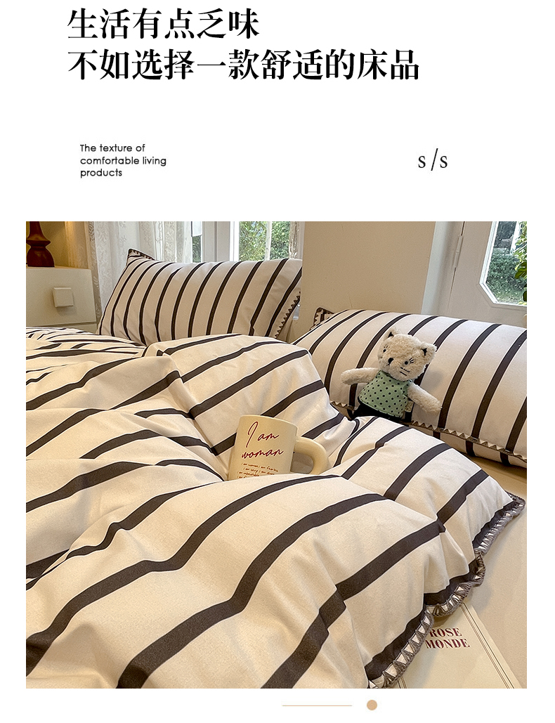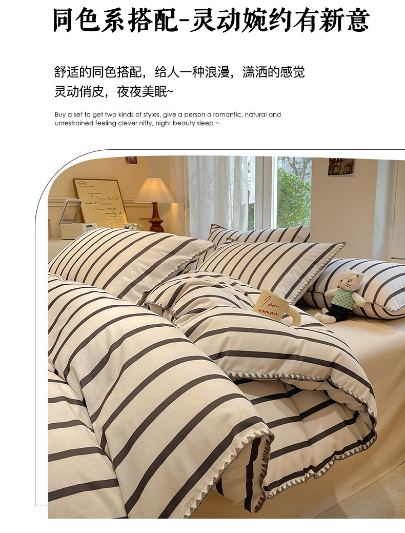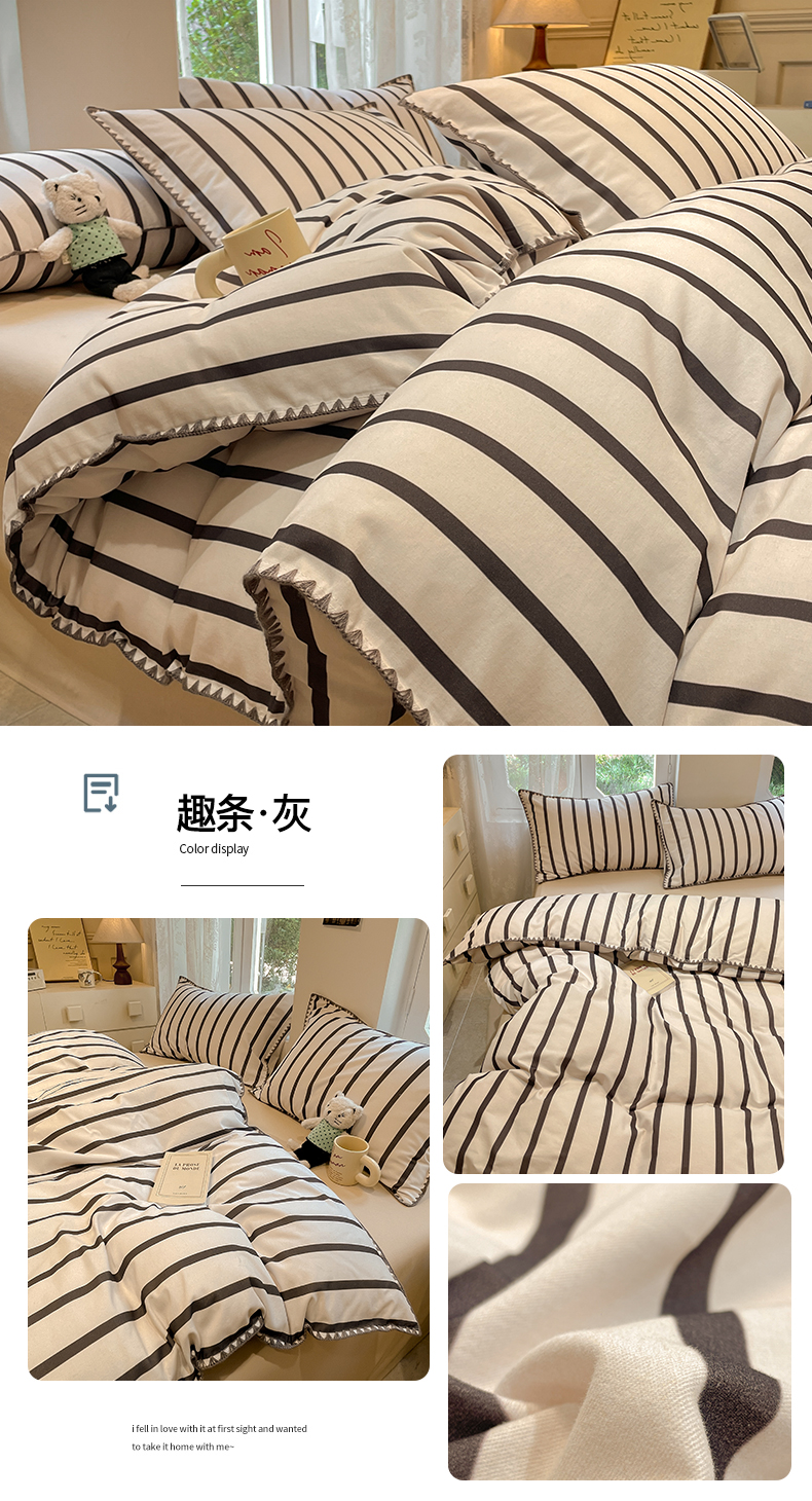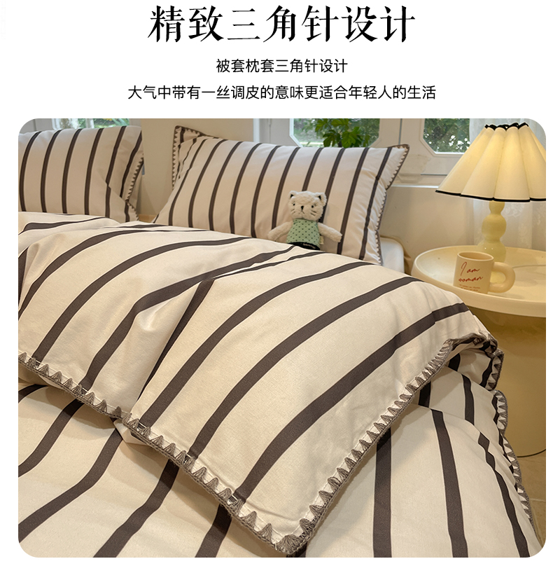 卧趣家纺 2024秋冬新品全棉磨毛四件套ins小清新三角针包边系列-风格二 趣条-灰