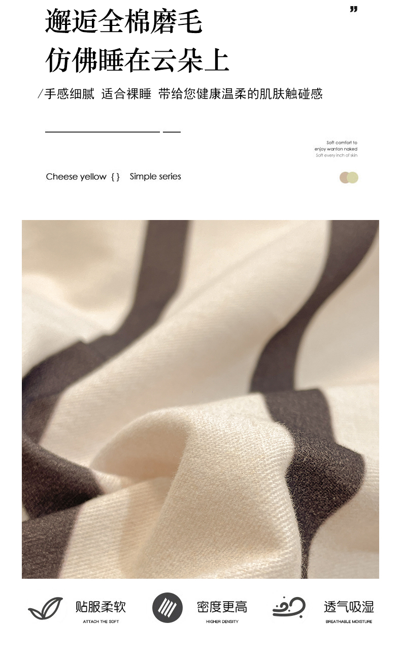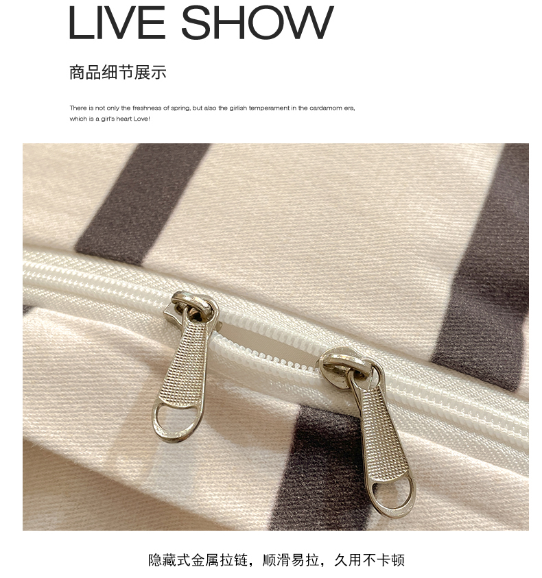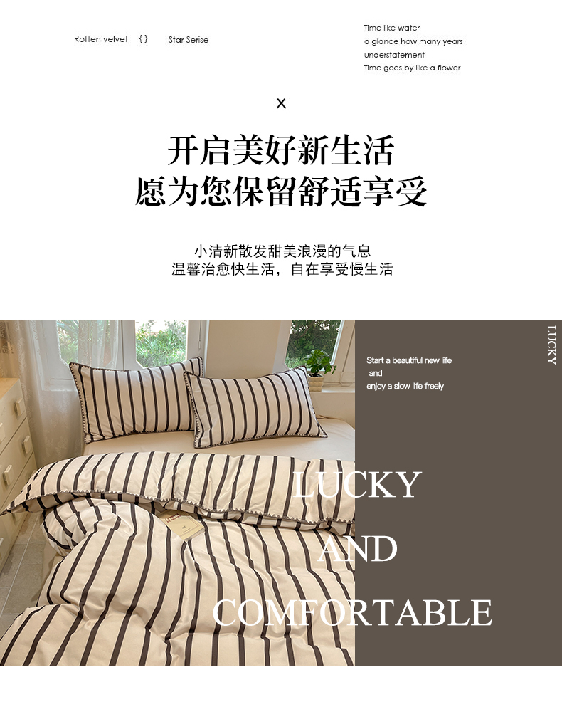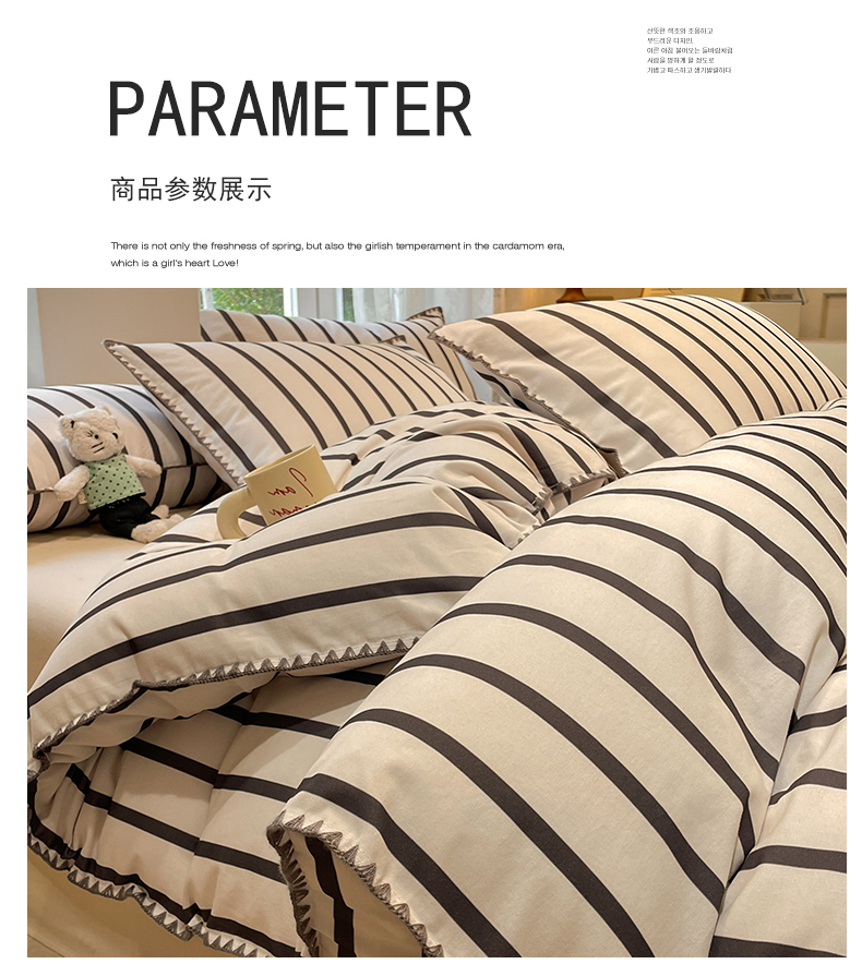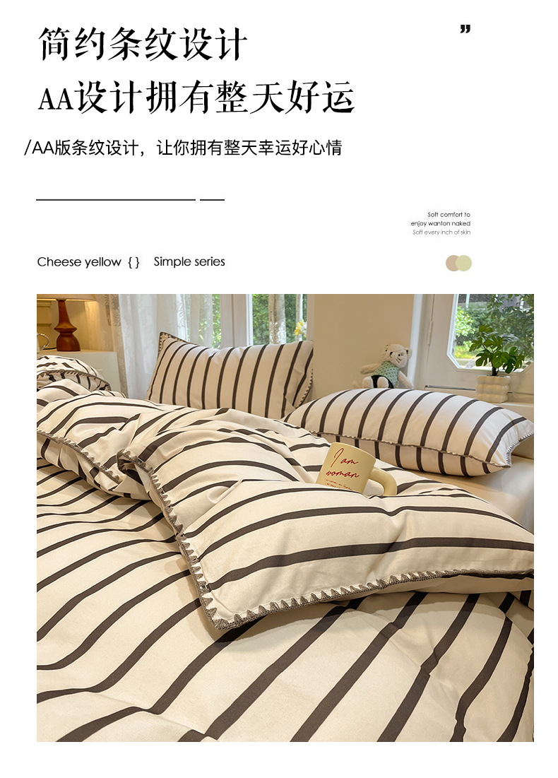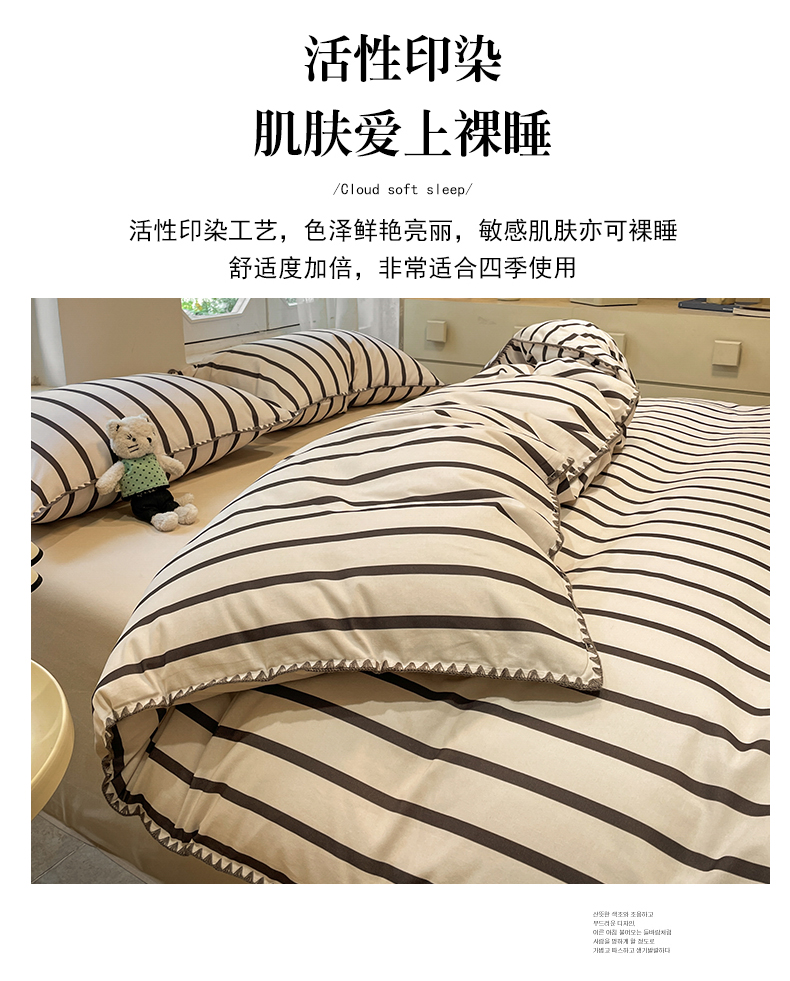 卧趣家纺 2024秋冬新品全棉磨毛四件套ins小清新三角针包边系列-风格二 趣条-灰