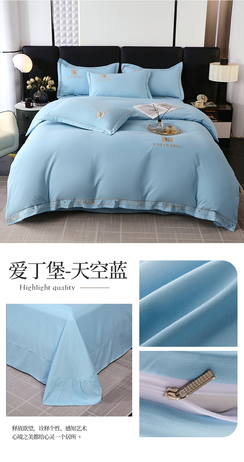 帛缔思 2024新款A类铂金棉水洗棉四件套-爱丁堡 爱丁堡-天空蓝