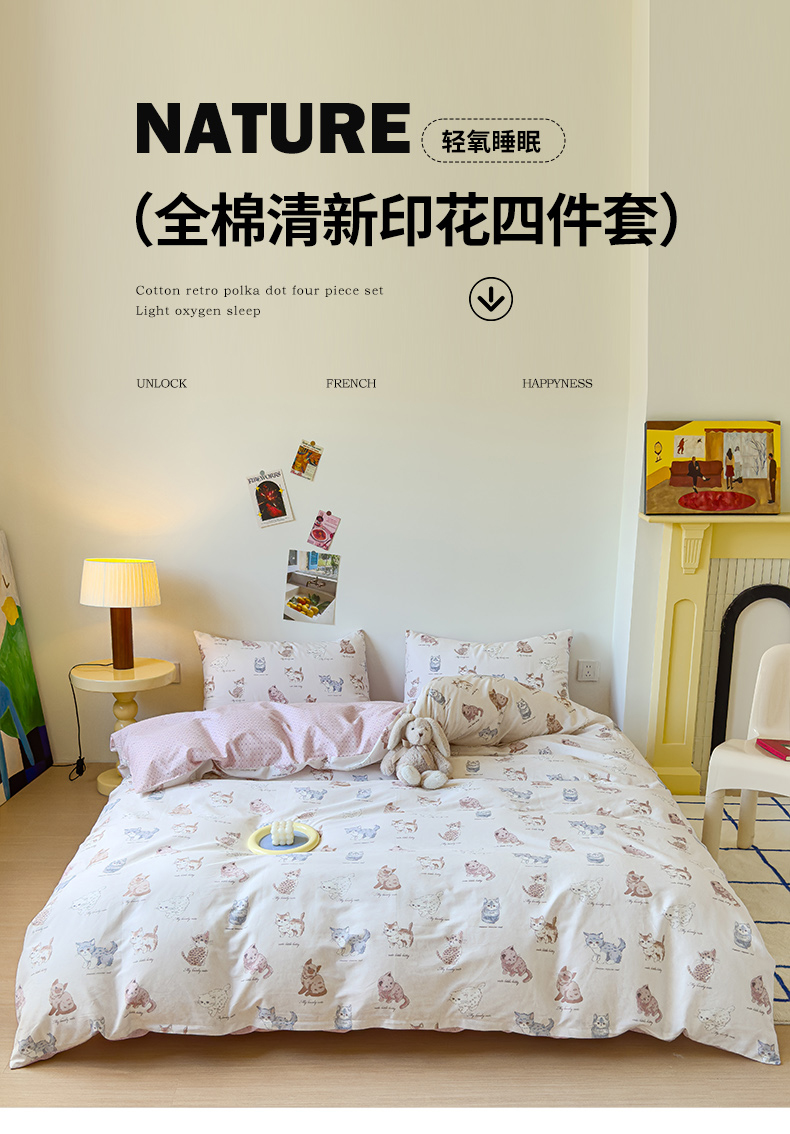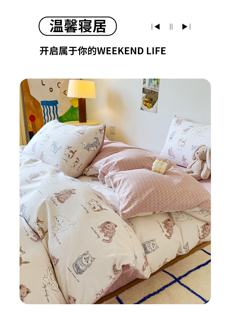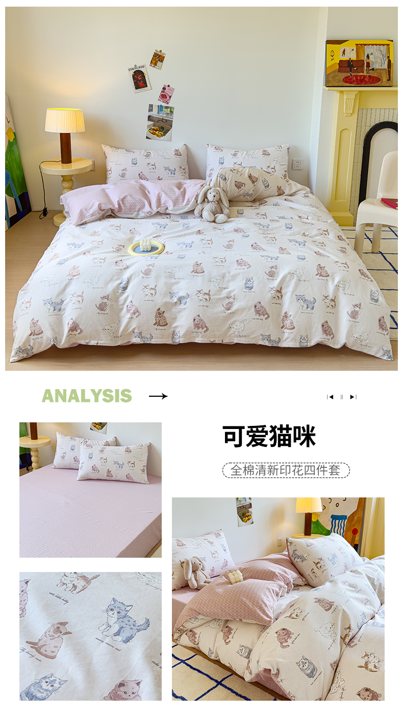商品名称:感遇家纺 2024新款全棉印花四件套 可爱猫咪