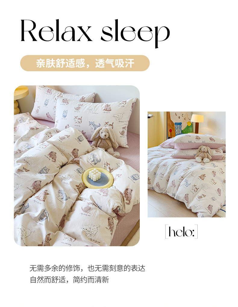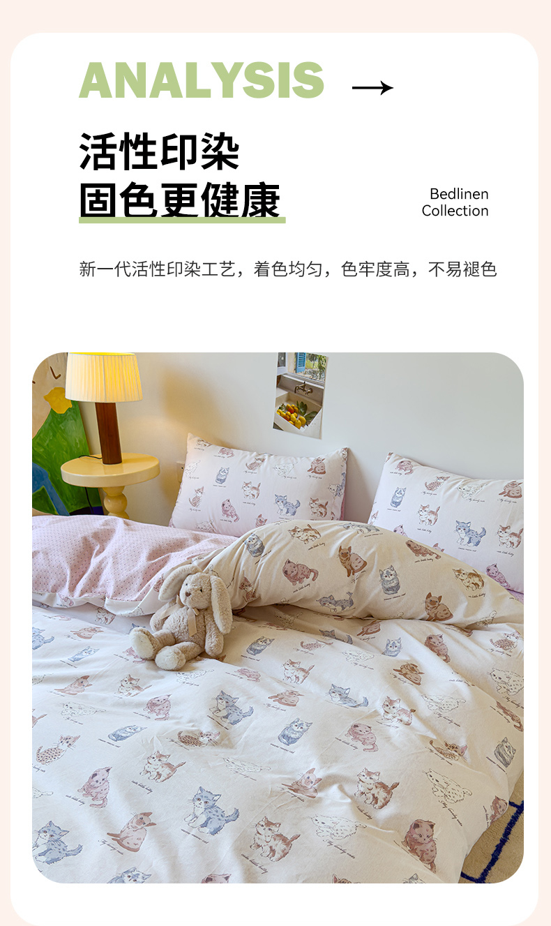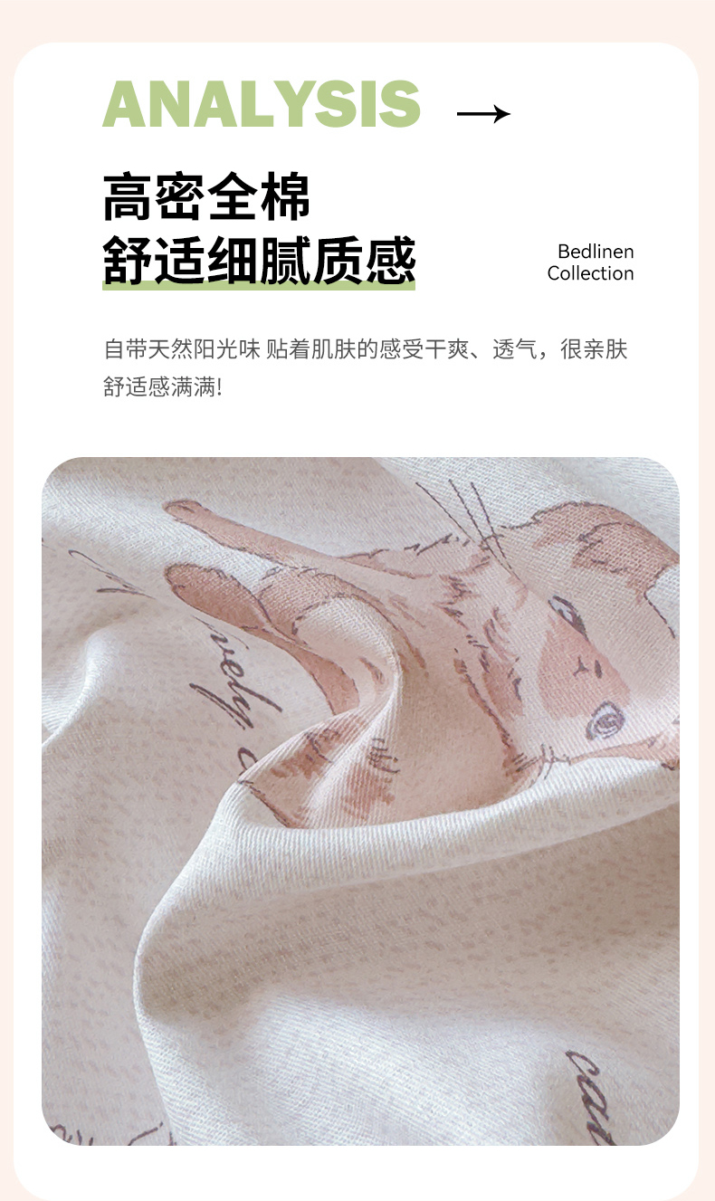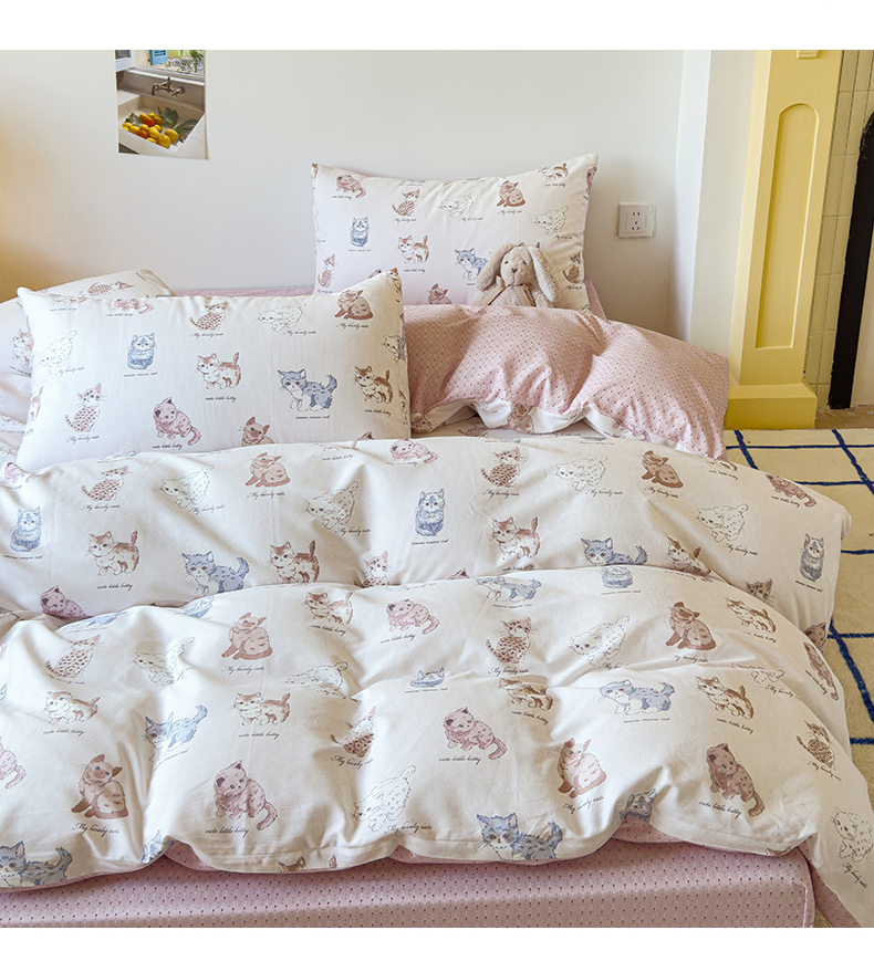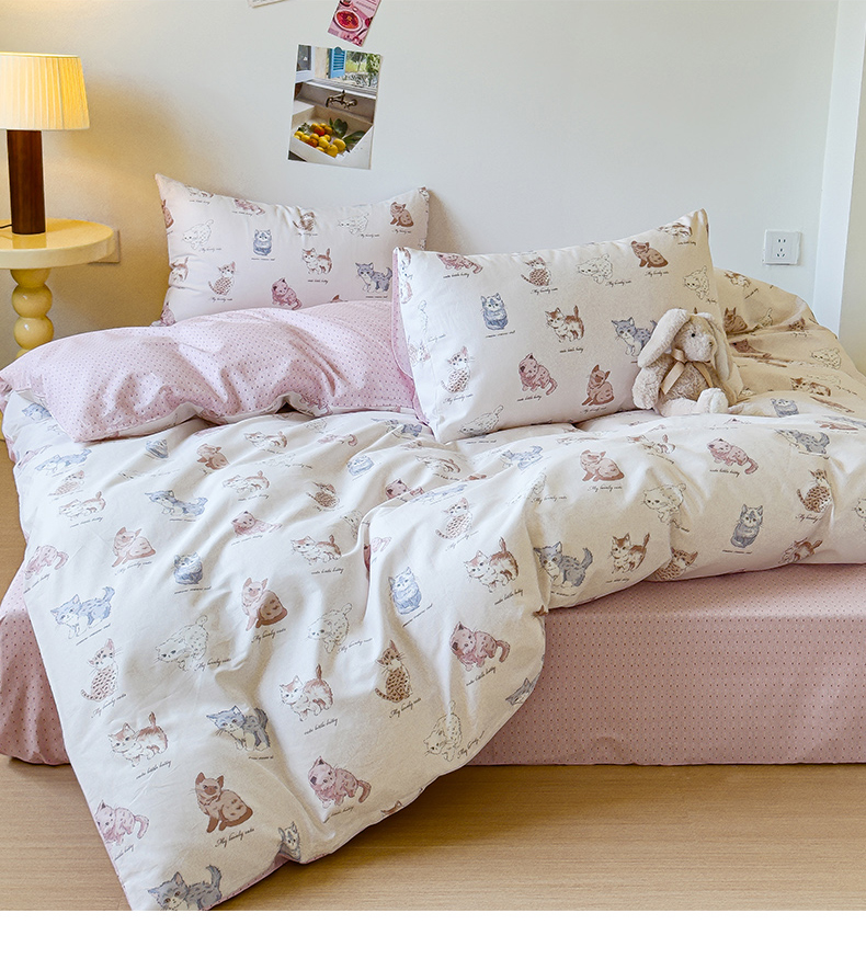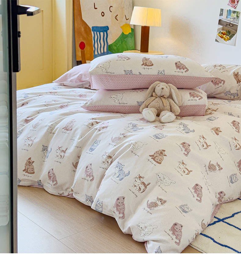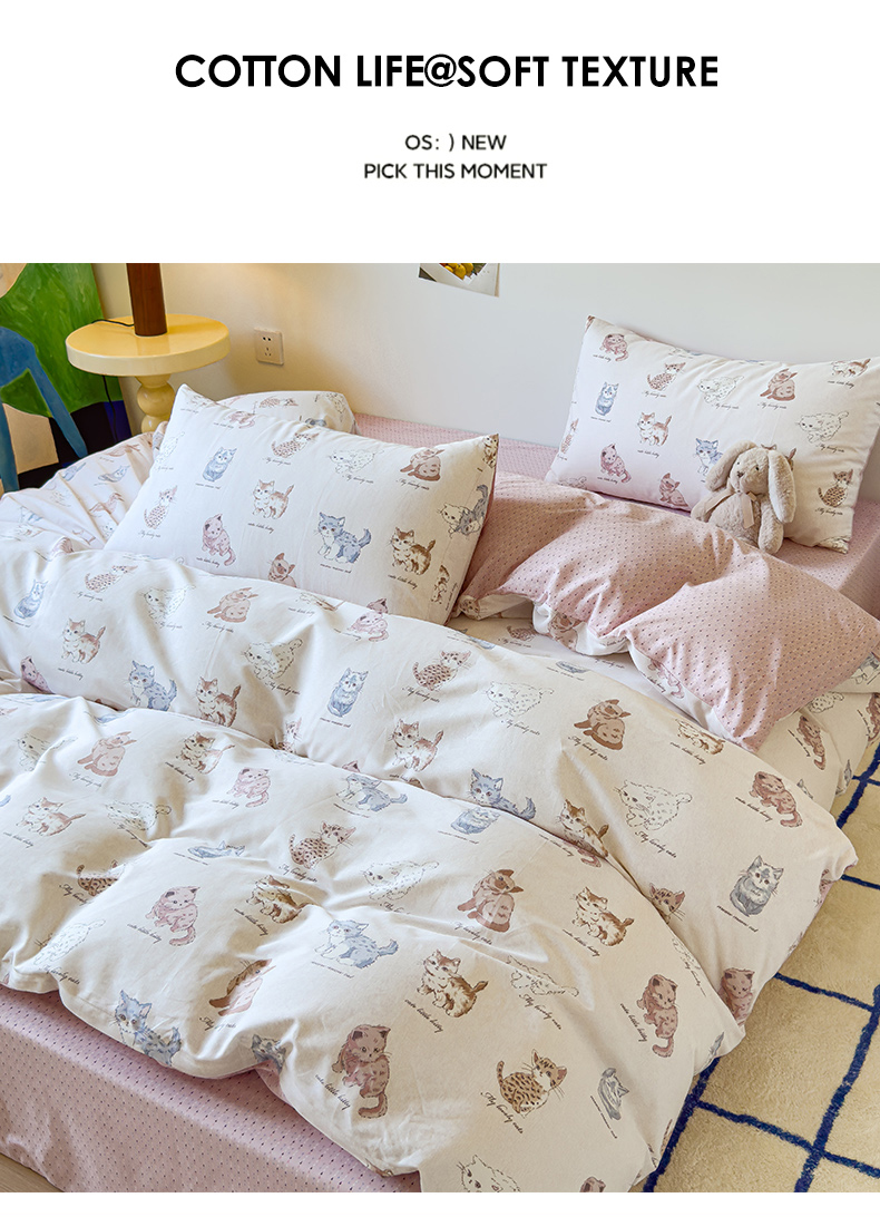 感遇家纺 2024新款全棉印花四件套 可爱猫咪