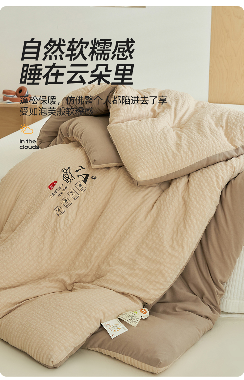 • 91家纺网 家纺一手货源 找家纺 子由 2024新款b类泡泡格7A抗菌大豆纤维冬被被子被芯 泡泡格-浅咖