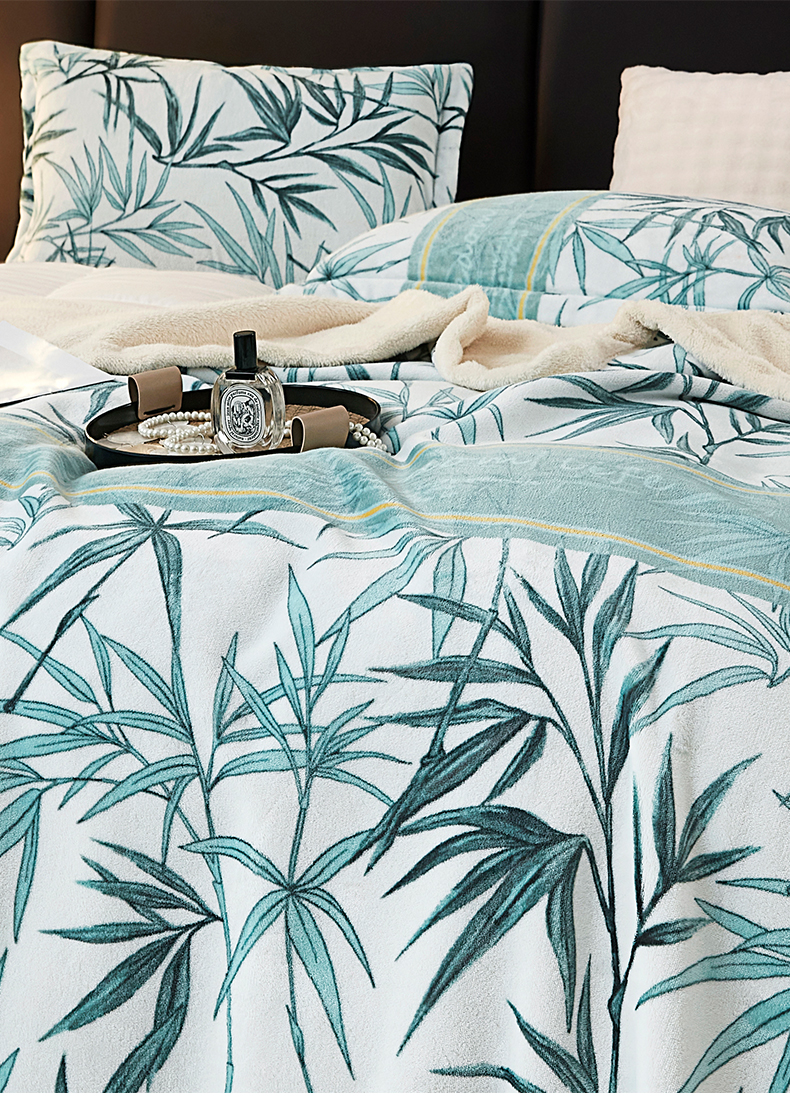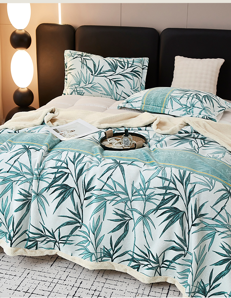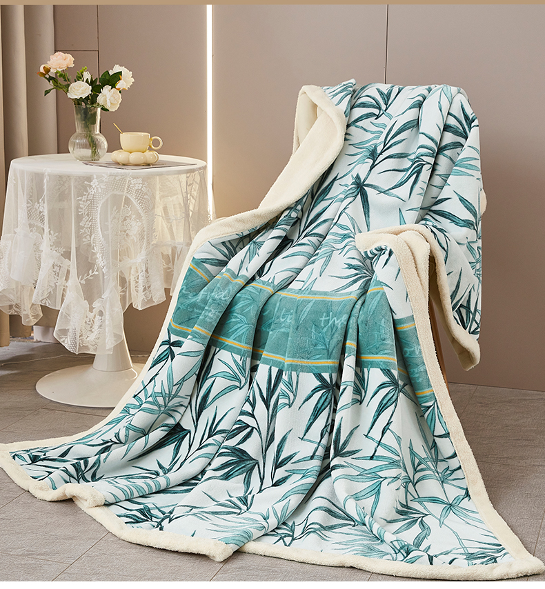 坦客毯业 2025年新款印花法莱绒毛毯沙发盖毯午睡毯子 简卉,简卉