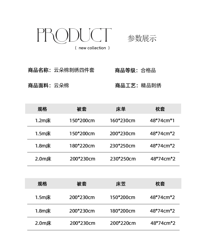 商品名称:(总)慕希家纺 2024新款精品刺绣韩版水洗棉四件套-小香风