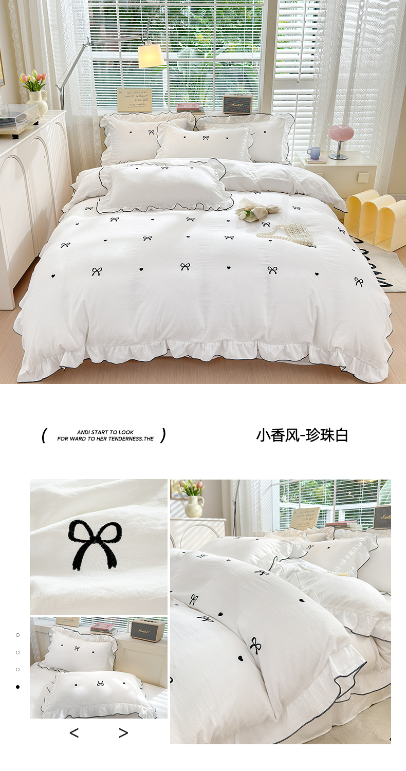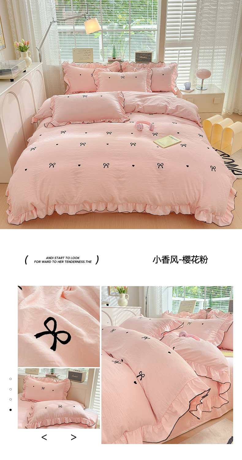 (总)慕希家纺 2024新款精品刺绣韩版水洗棉四件套-小香风