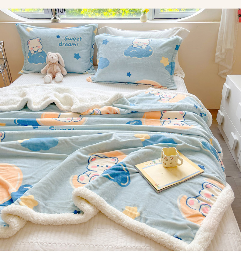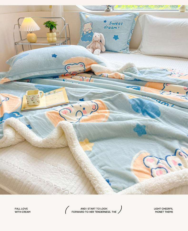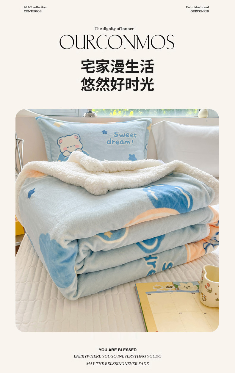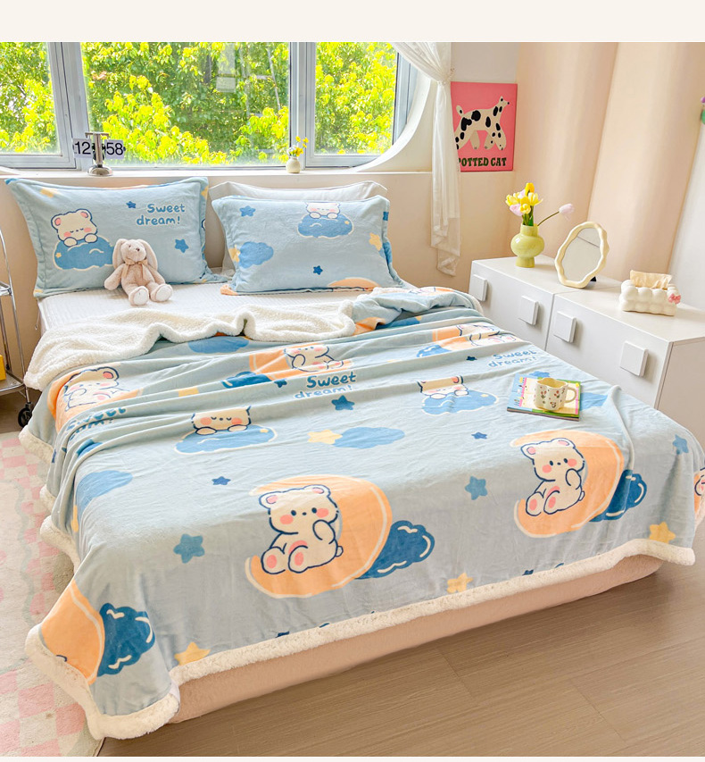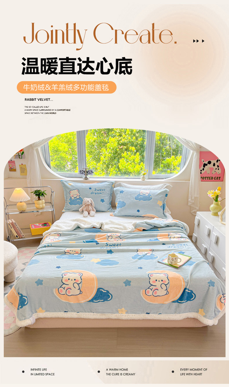 沐慕 2024新款AB版牛奶绒拼羊羔绒毛毯毯子 毛毯-晚安熊