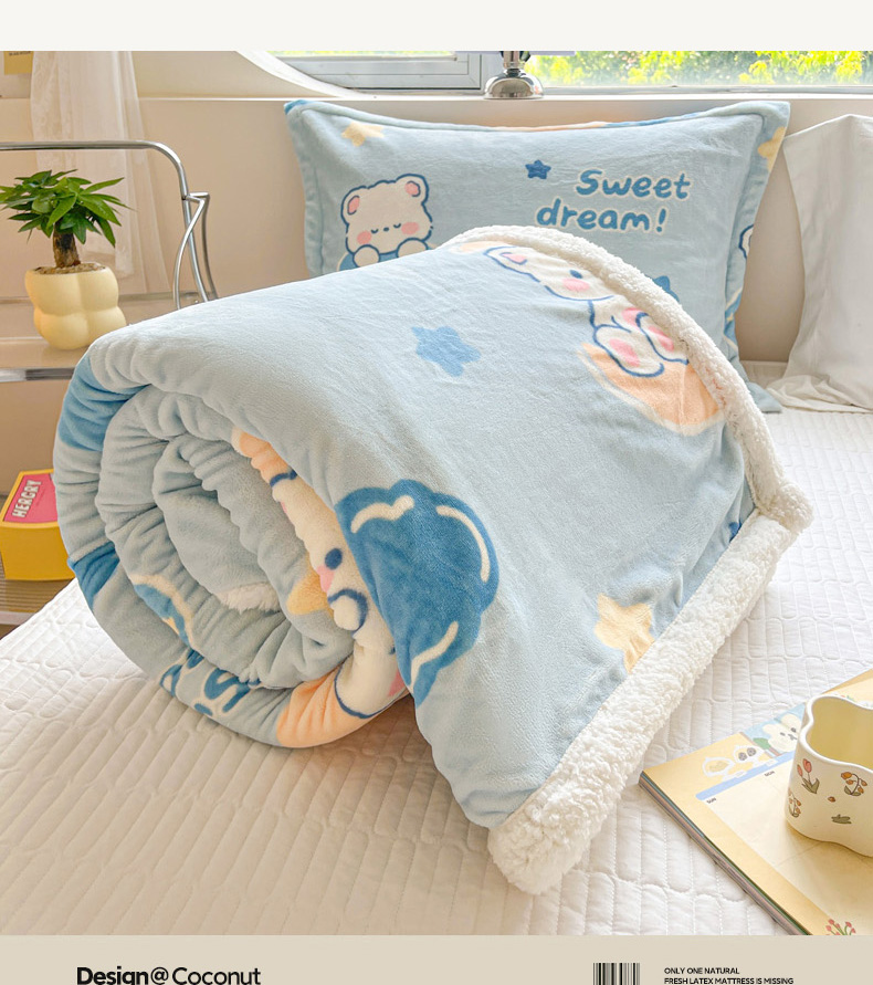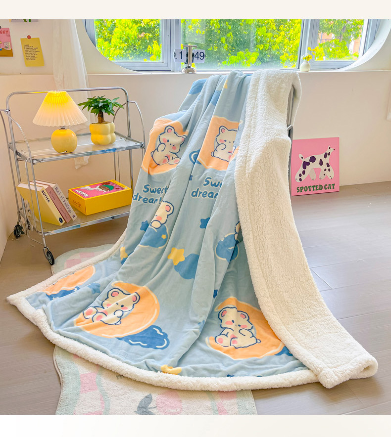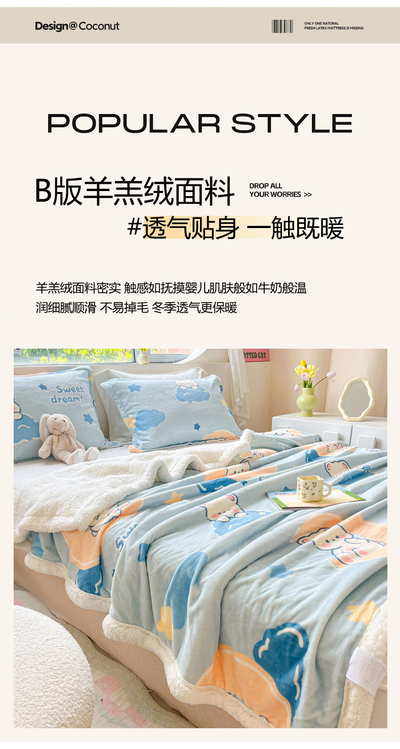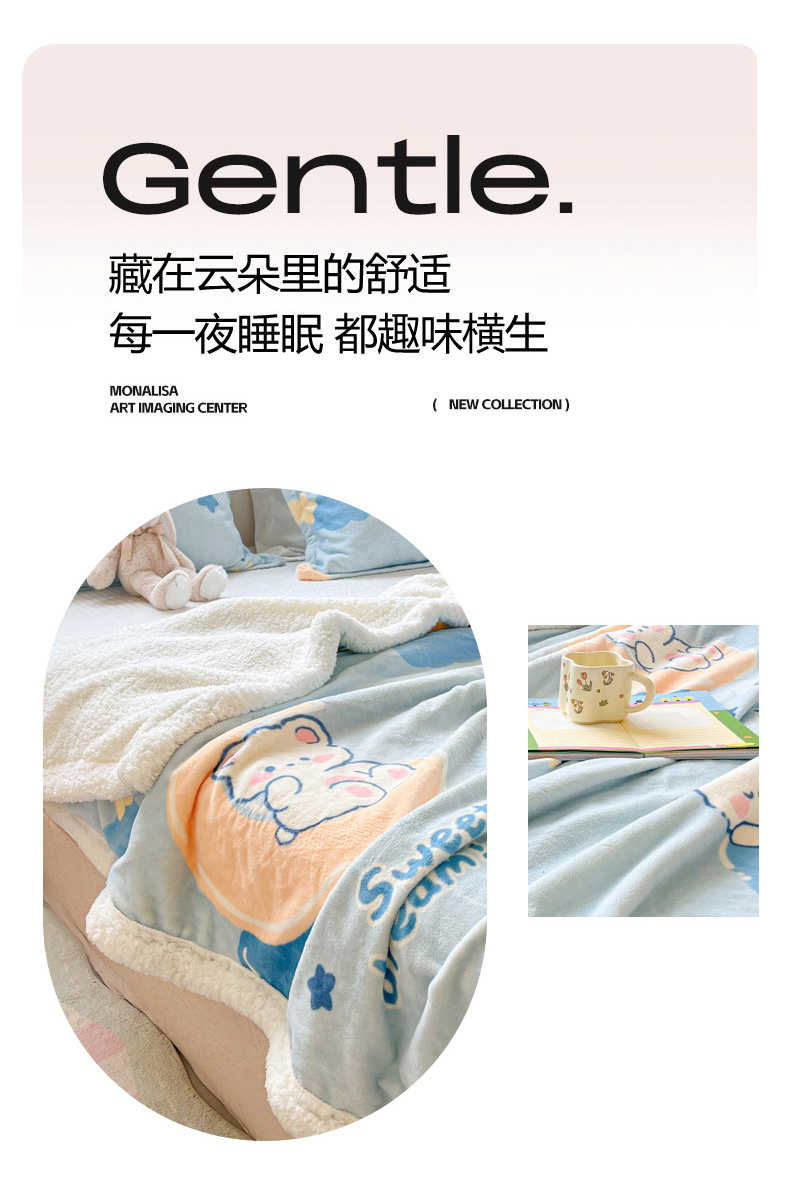 商品名称:沐慕 2024新款AB版牛奶绒拼羊羔绒毛毯毯子 毛毯-晚安熊