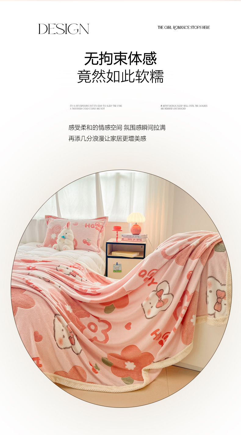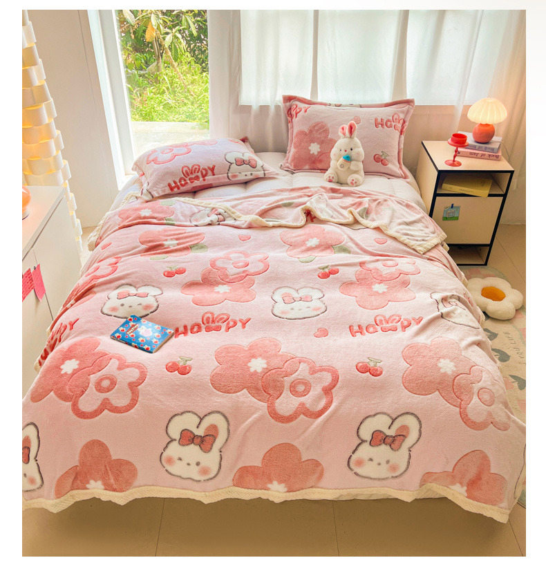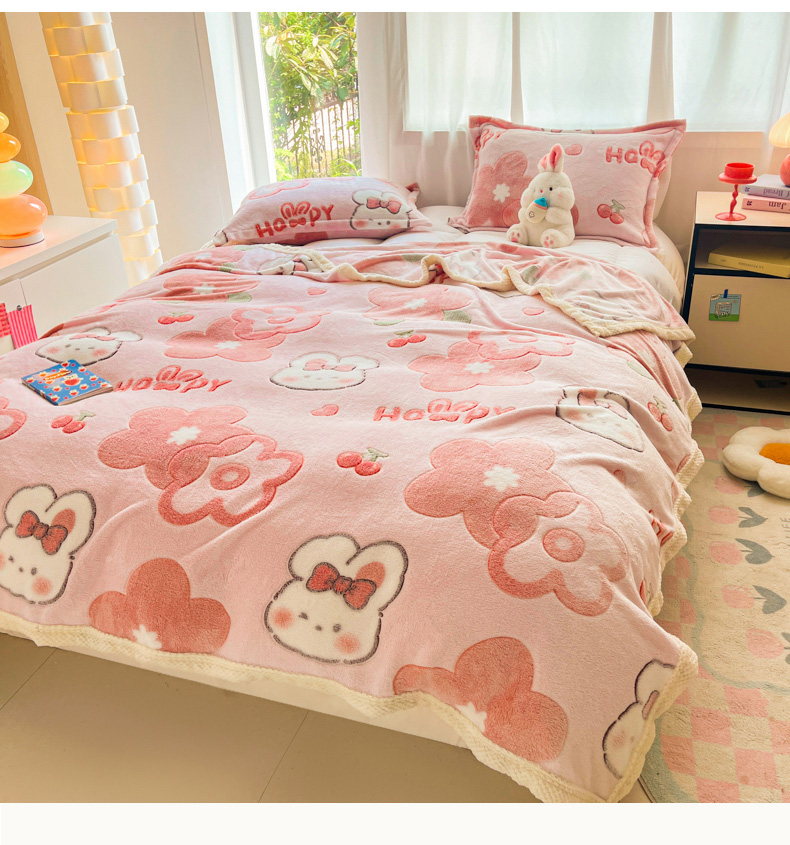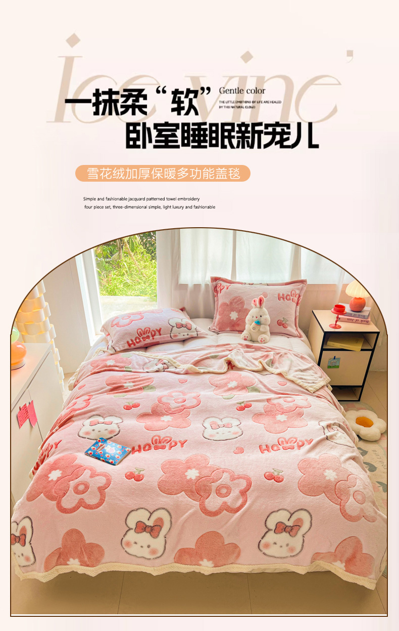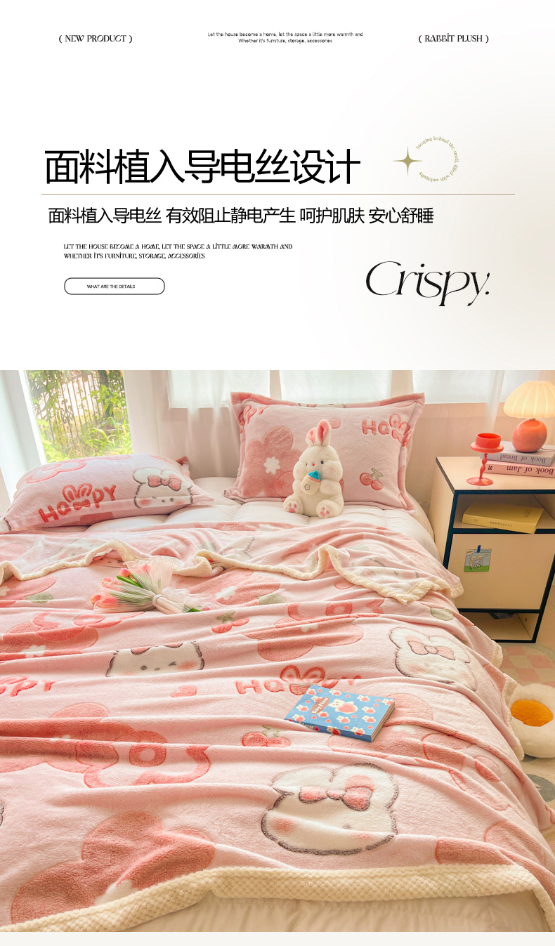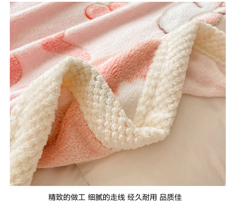 商品名称:沐慕 2024新款加厚雪花绒菠萝格宽幅包边毛毯 毛毯-花花粉兔