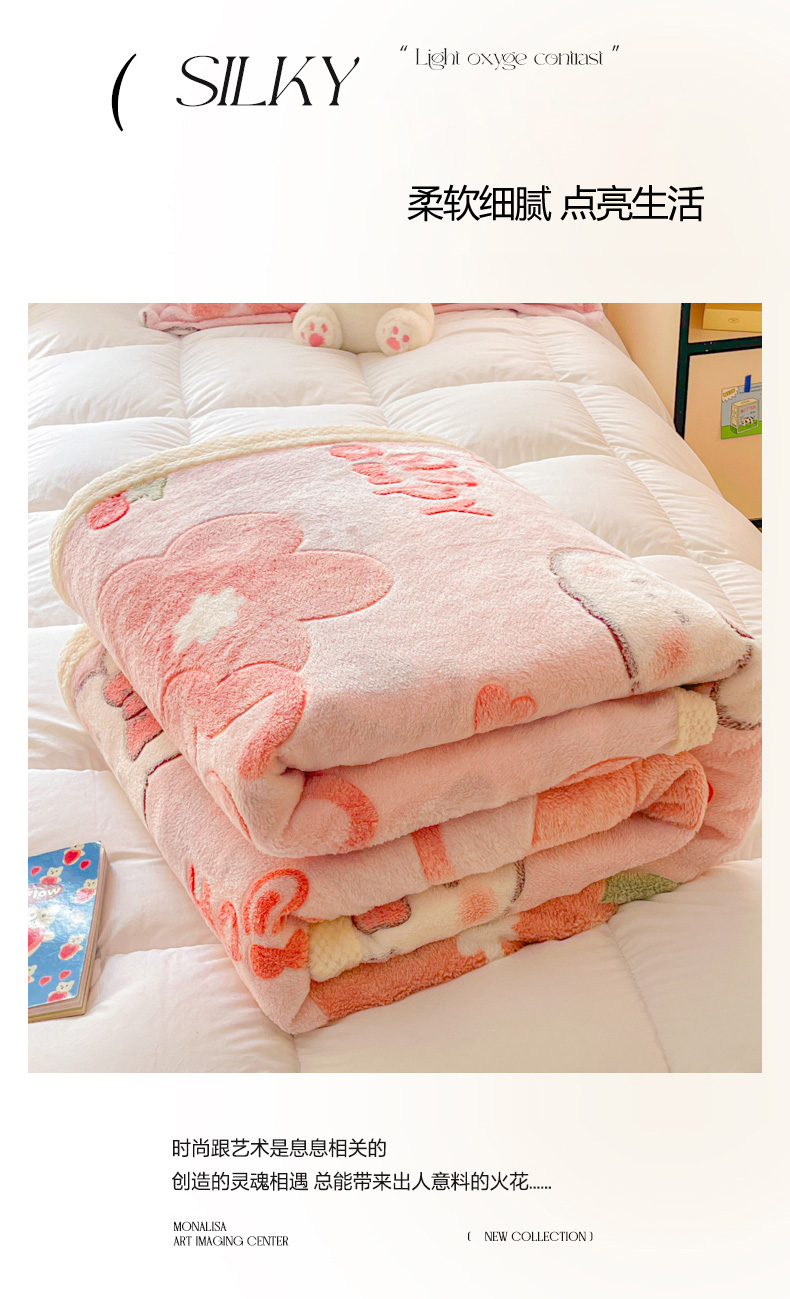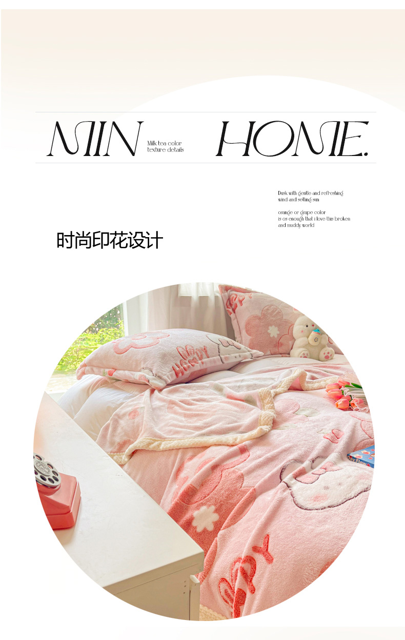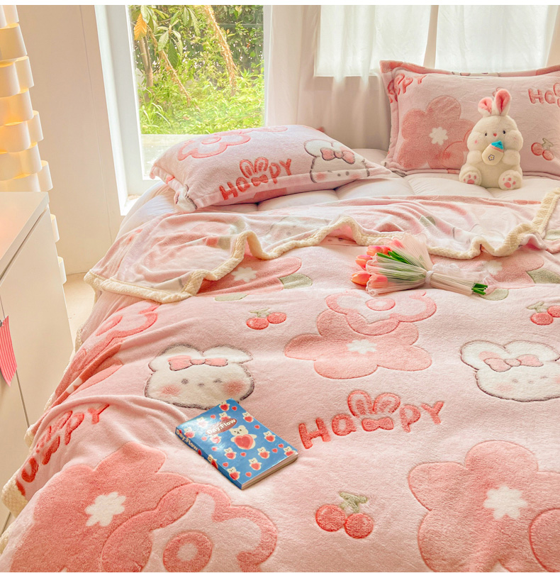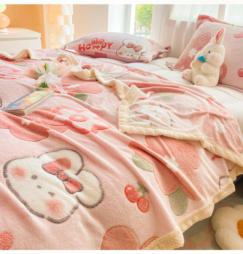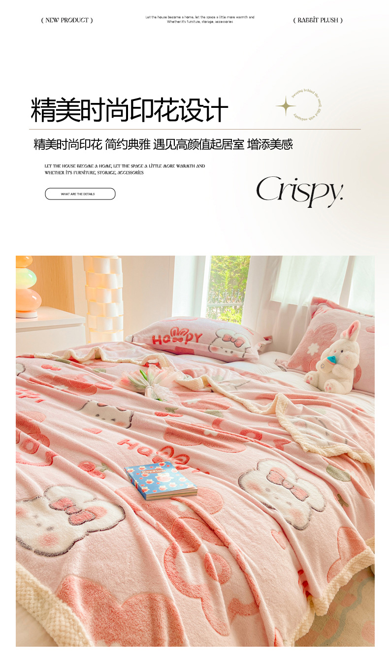 商品名称:沐慕 2024新款加厚雪花绒菠萝格宽幅包边毛毯 毛毯-花花粉兔