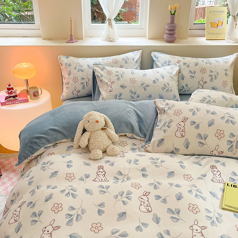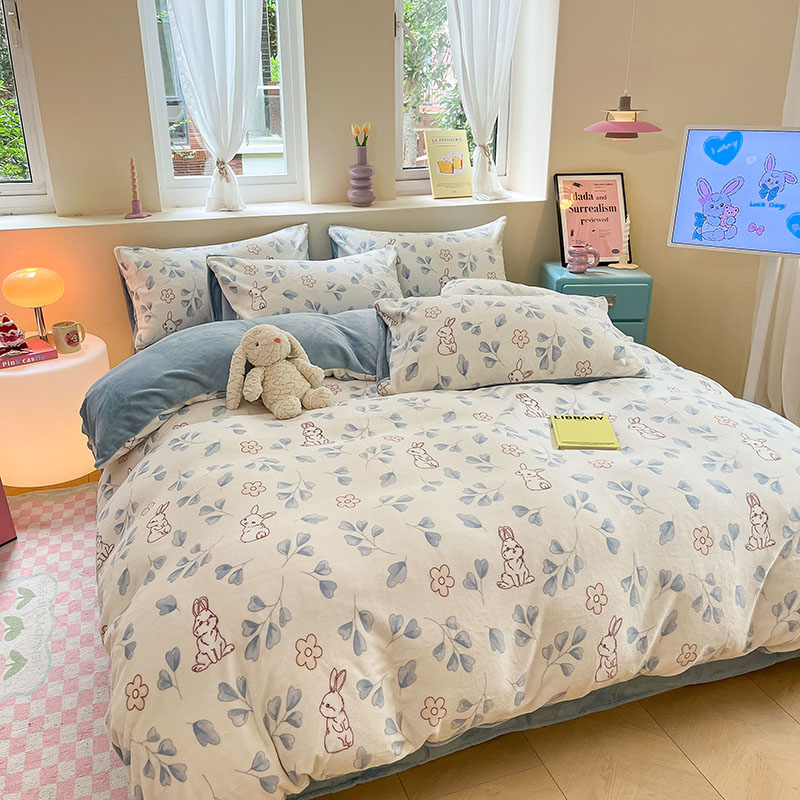 雅居纺家纺 2024新款高克重印花牛奶绒单被套 乖乖兔
