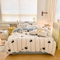 商品名称:雅居纺家纺 2024新款高克重印花牛奶绒四件套 蓝条猫咪